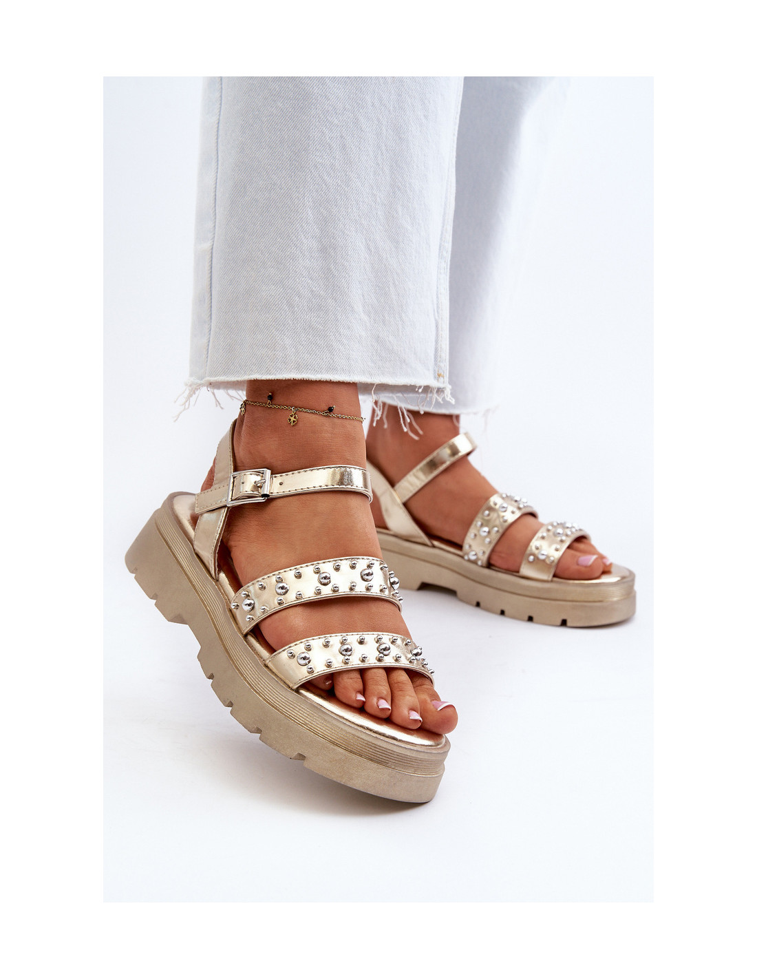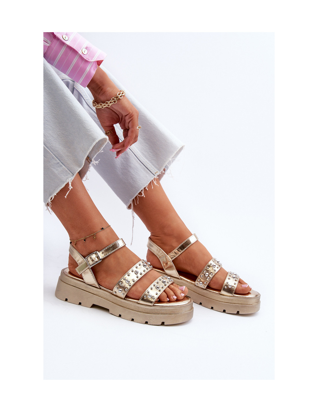 Moteriškos dekoruotos basutės Eco Leather Gold Arcida