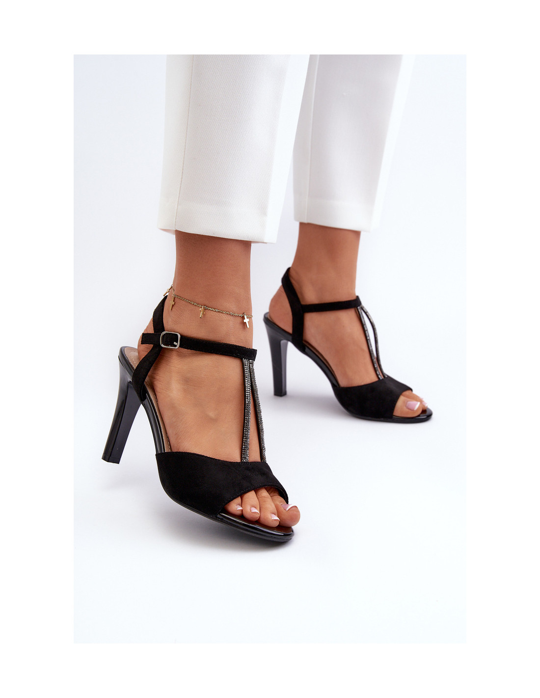 Moteriški sandalai ant aukšto kulno su dekoruotomis petnešėlėmis Sergio Leone SK924 juodi