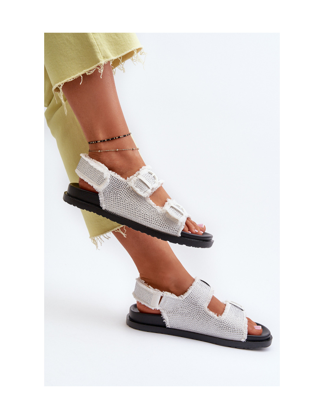Dekoruoti moteriški sandalai iš tekstilės medžiagos. Montuojamas ant platformos. Nugaroje užsegamos Velcro, užtikrina stabilumą ir lengvą reguliavimą. Puikiai tinka vasaros pasivaikščiojimams ar vakaro išvykoms. Šis modelis puikiai tiks plačioms pėdoms! Renkantis dydį, vadovaukitės dydžių lentele.