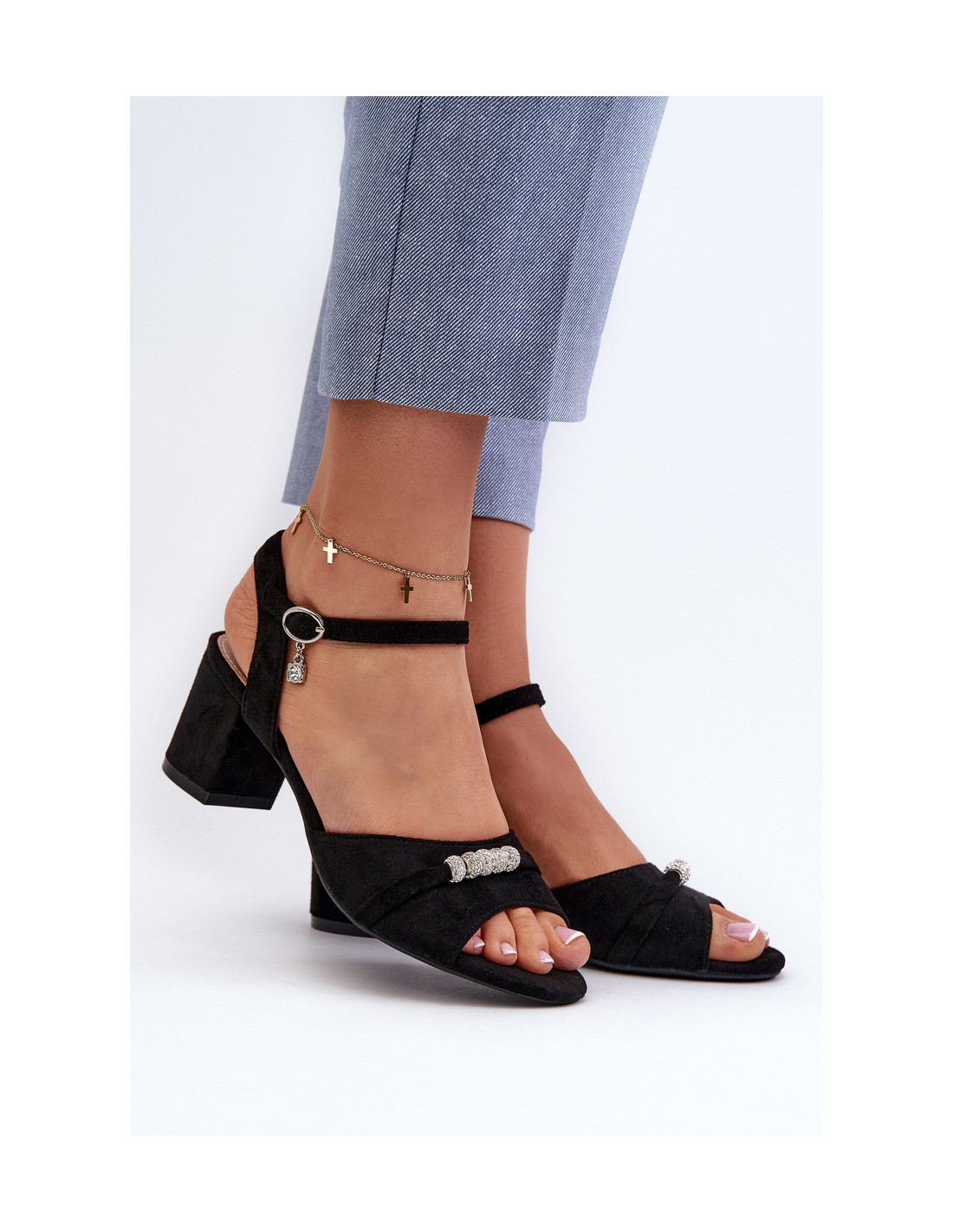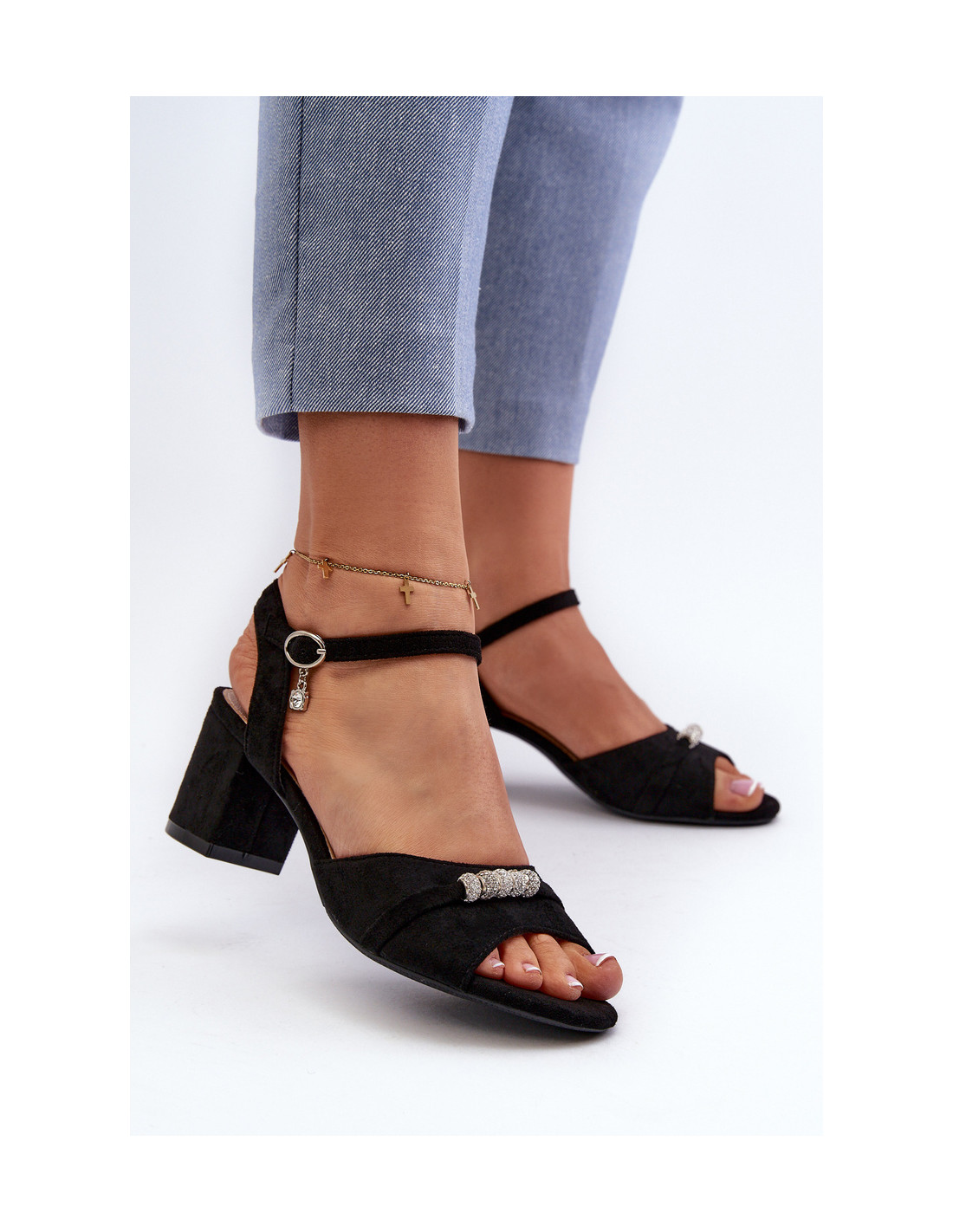 Madingi Vincezos moteriški sandalai. Pagaminta iš ekologiškos zomšos. Stabilus stulpelio formos kulnas užtikrina patogumą dėvėti ilgą laiką. Papildomos dekoracijos suteikia jiems subtilų, bet unikalų vaizdą, kuris patraukia dėmesį ir puikiai papildo daugybę stilių. Renkantis dydį, vadovaukitės dydžių lentele.