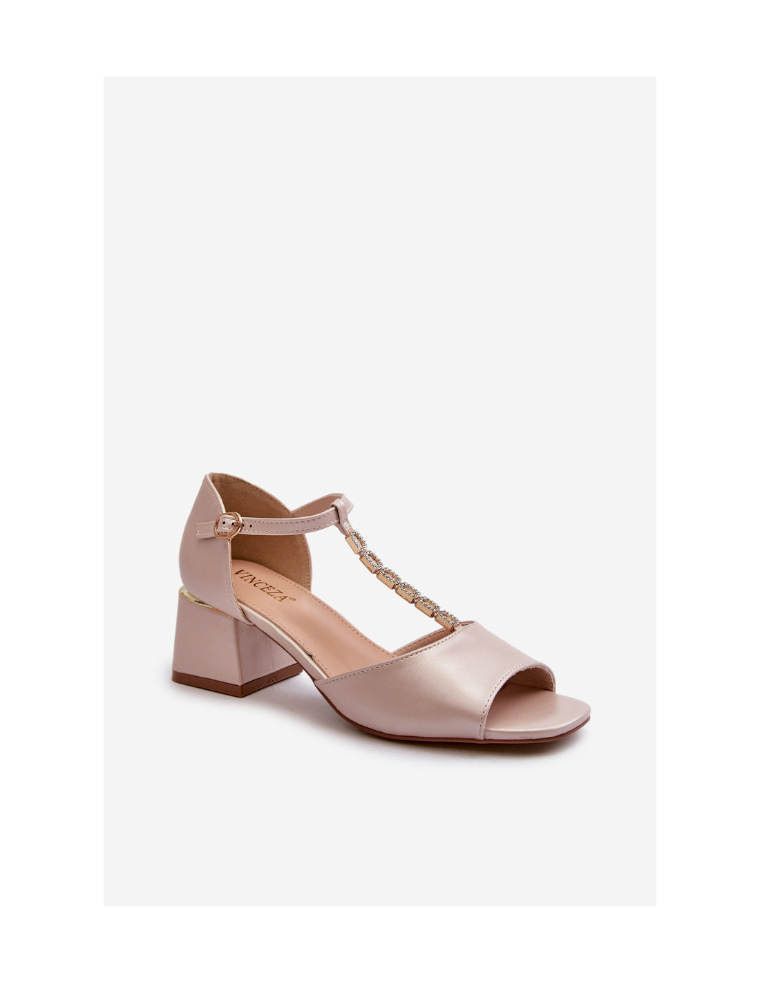 Stilingos moteriškos Vinceza basutės yra ne tik madingas jūsų garderobo papildymas, bet ir idealus pasirinkimas įvairioms progoms. Pagaminti iš ekologiškos odos, jie turi stabilų blokinį kulną, kuris garantuoja pasitikėjimą jūsų žingsniu. Užsegamas reguliuojamu dirželiu su sagtimi, užtikrina puikų prigludimą. Be to, dekoratyvinė juostelė priekyje suteikia jiems nepakartojamo žavesio. Puikiai tinka vestuvėms ir naktims. Renkantis dydį, vadovaukitės dydžių lentele.