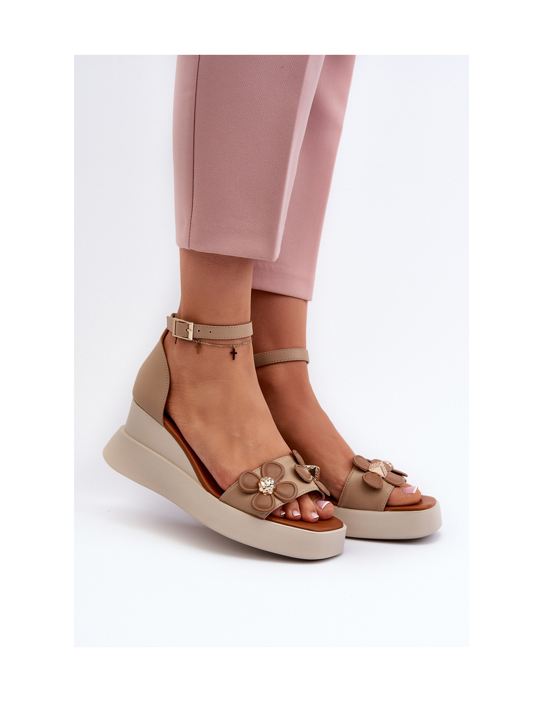 Moteriški sandalai ant platformos ir pleišto su gėlėmis, smėlio spalvos Foviana