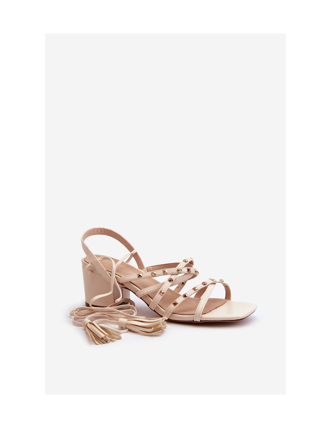 Stilingi moteriški sandalai iš eko odos. Priekyje susipynusios juostelės papildomai dekoruotos smeigėmis. Modelis surištas. Šios basutės puikiai tiks vasaros dienoms, jos puikiai papildys jūsų vasaros garderobą, suteiks stiliaus ir originalumo. Renkantis dydį, vadovaukitės dydžių lentele.