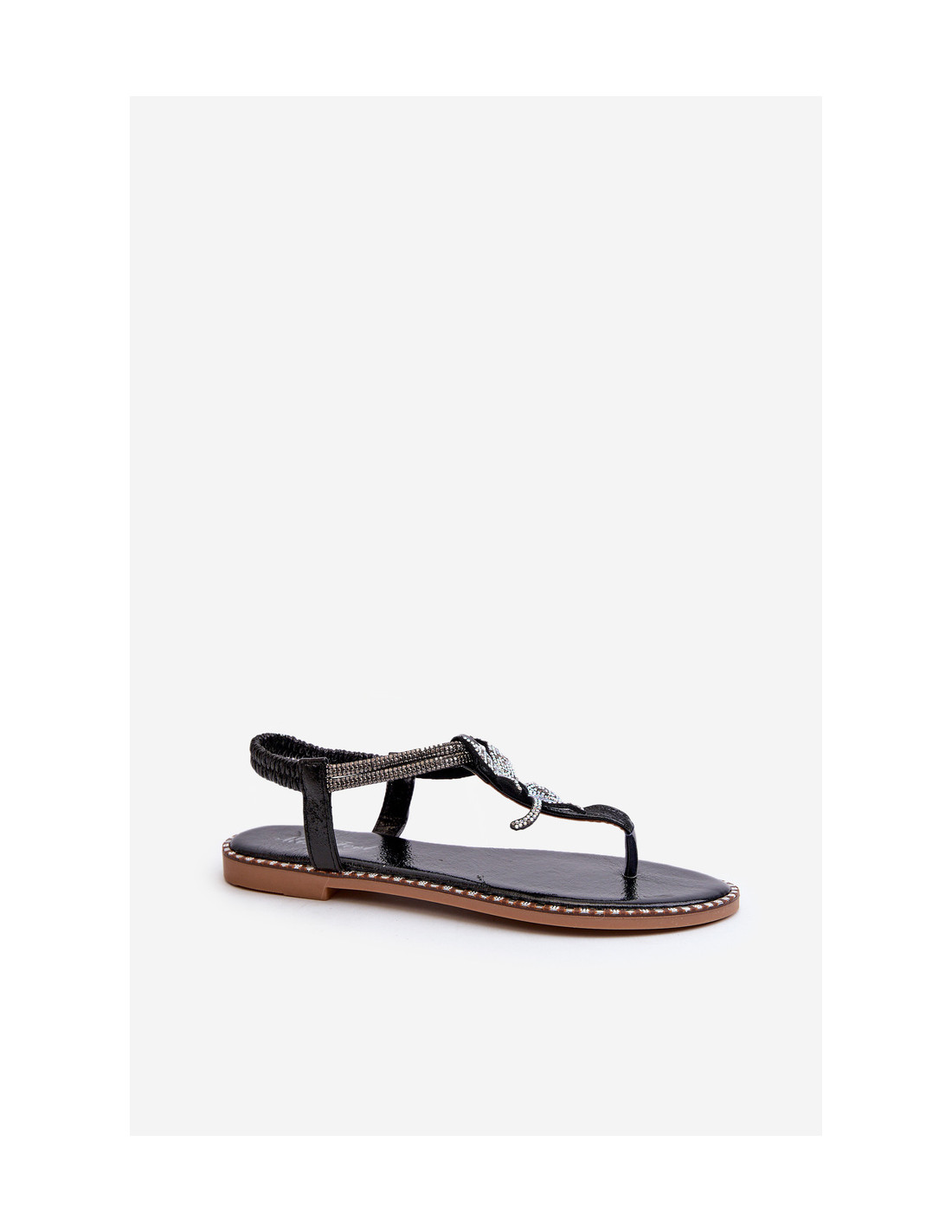 Moteriškos plokščios basutės su dekoratyvine gėle, Black Edoni