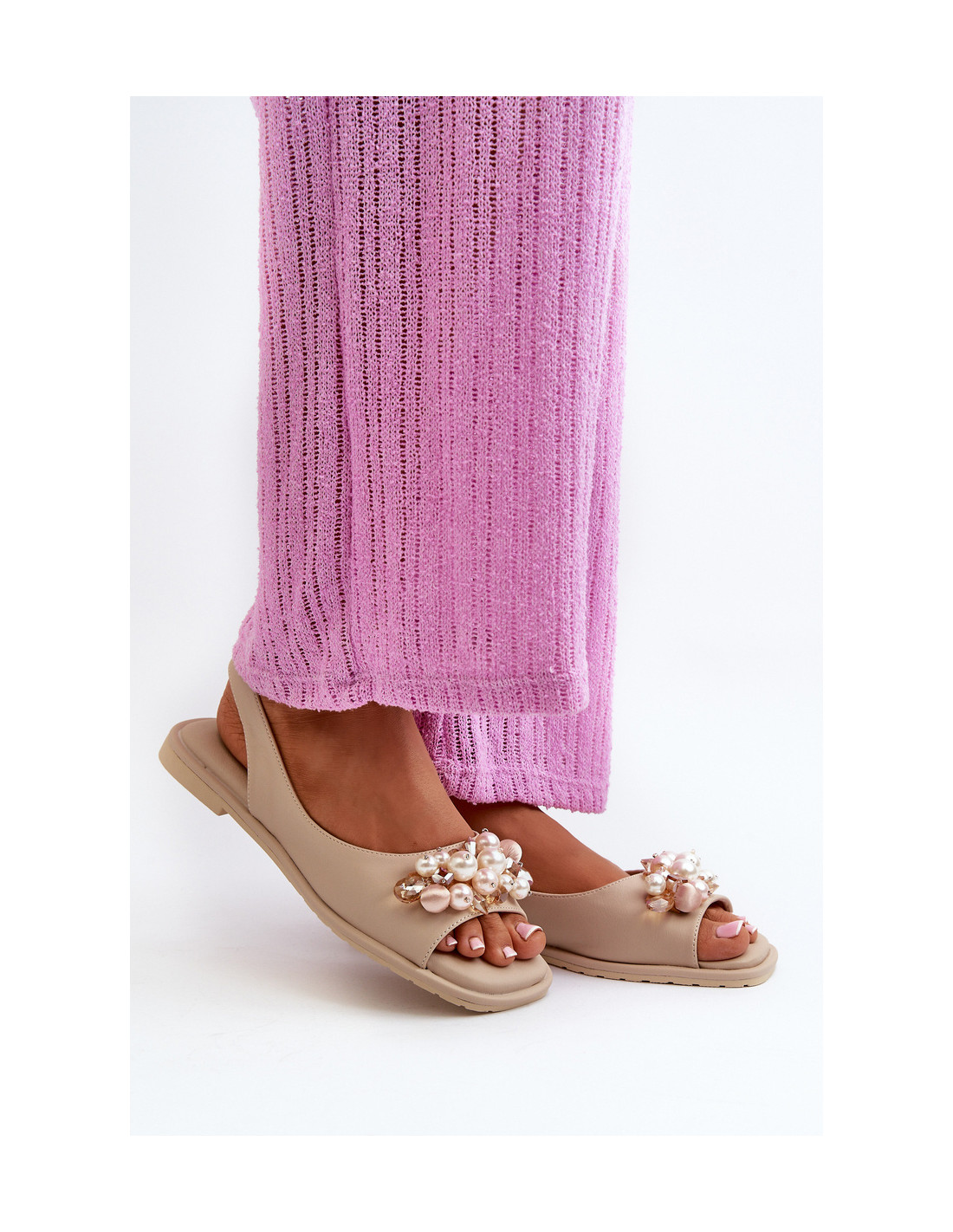 Moteriškos basutės iš aukštos kokybės ekologiškos odos. Priekis dekoruotas elegantiškomis detalėmis. Nugaros dirželis turi elastinę juostelę, kad būtų geriau. Nustatykite ant plokščio kulno. Minkštas Comfort įdėklas garantuoja dėvėjimo komfortą. Renkantis dydį, vadovaukitės dydžių lentele.