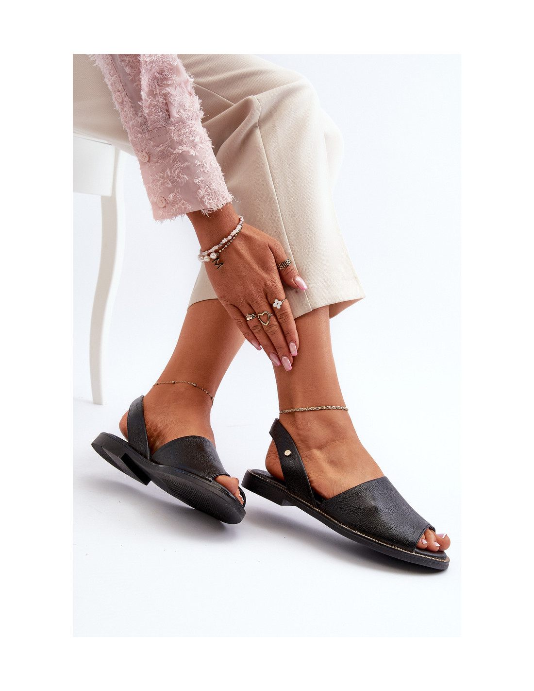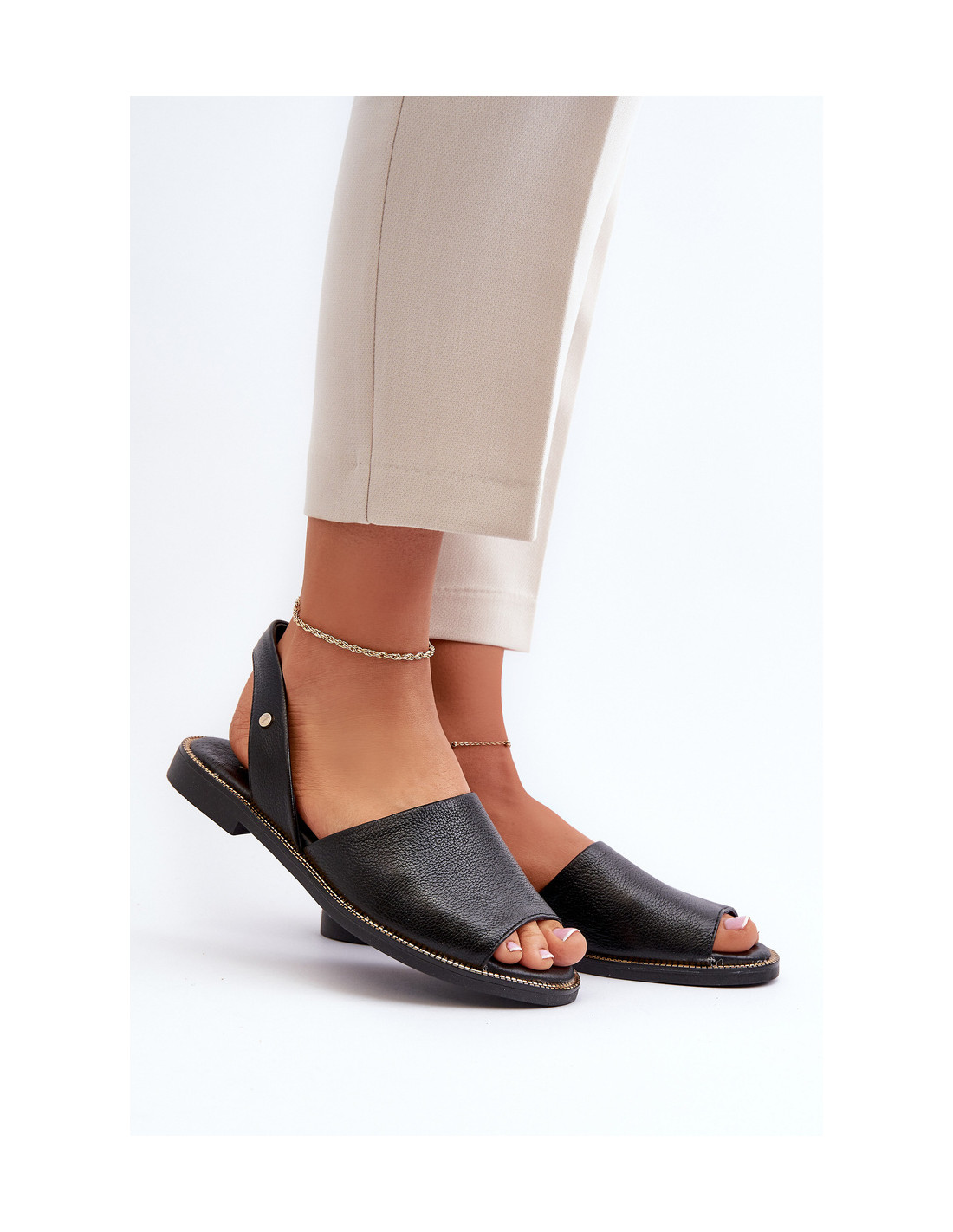 Moteriškos užsegamos basutės pagamintos iš aukštos kokybės natūralios odos. Pastatas ant plokščio kulno su dekoracijomis ant pado. Sandalai turi atvirą kulną ir pirštus. Minkštas odinis įdėklas užtikrina patogų naudojimą. Sandalai yra slydimo, o nugarinė batviršio dalis yra šiek tiek standesnė. Renkantis dydį, vadovaukitės dydžių lentele.