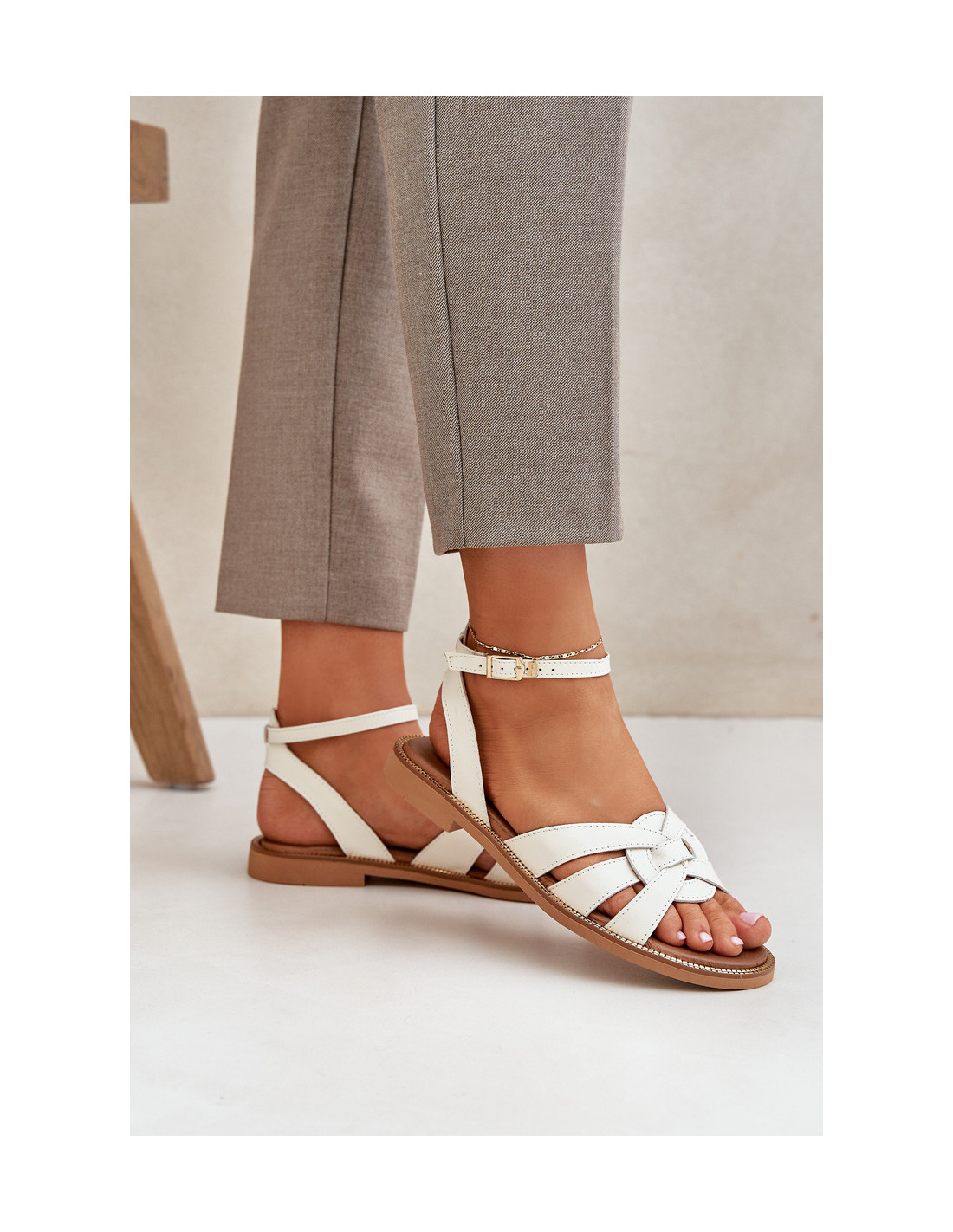 Zazoo 3688 Ecru moteriškos odinės plokščios basutės