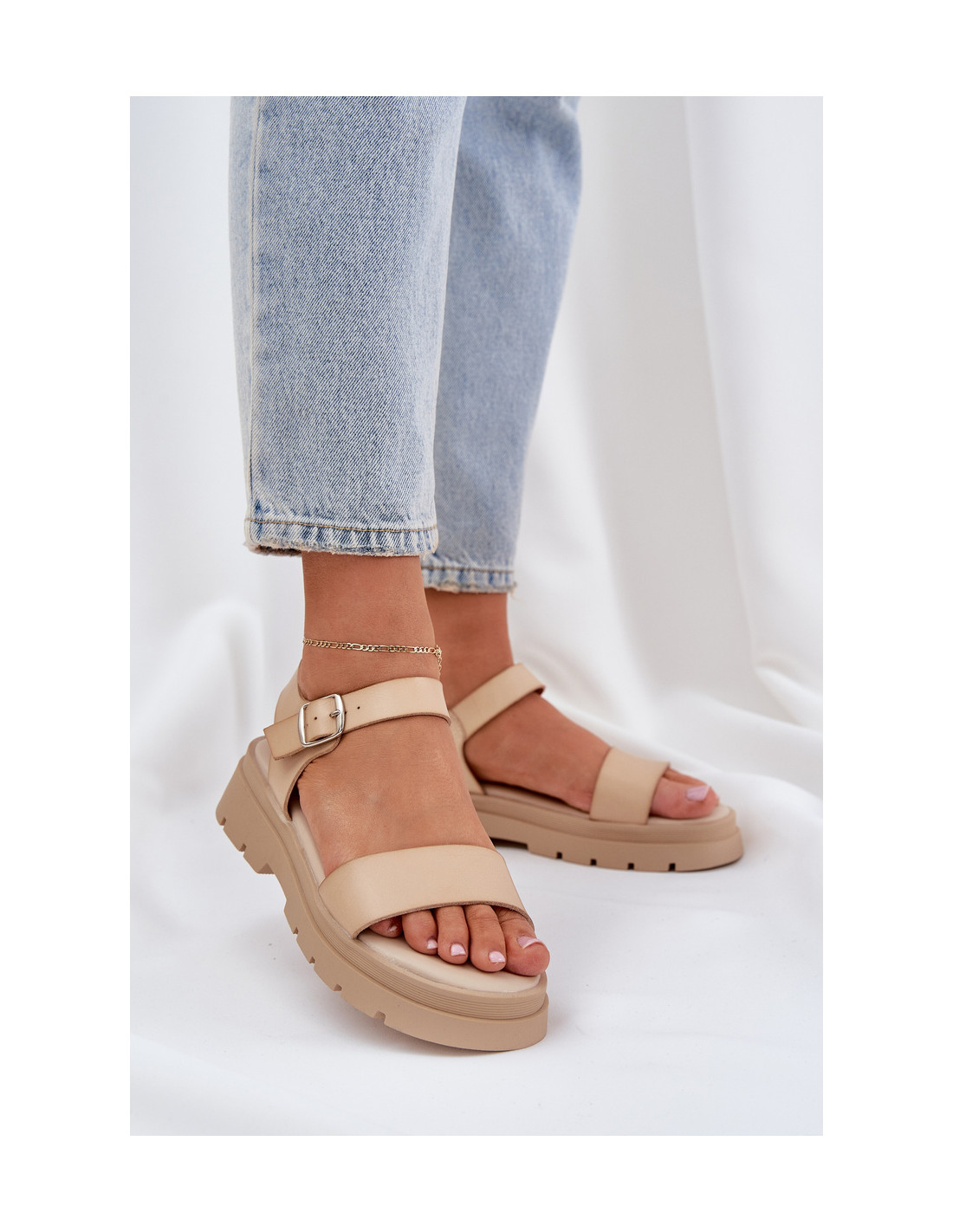 Patogūs moteriški sandalai yra sukurti su plokščiu kulnu ir platforma. Pagaminti iš ekologiškos odos, jie turi platų dirželį, kuris stabilizuoja pėdą, neleidžia jai slysti. Dėl minkšto vidpadžio šie batai garantuoja komfortą net ir visą dieną nešiojant! Modelis aplink kulkšnį užsegamas reguliuojamu dirželiu su sagtimi. Tai puikus pasirinkimas šiltoms vasaros dienoms. Renkantis dydį, vadovaukitės dydžių lentele.