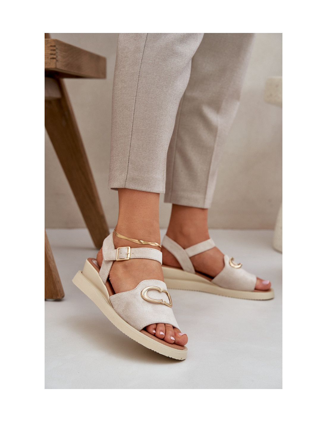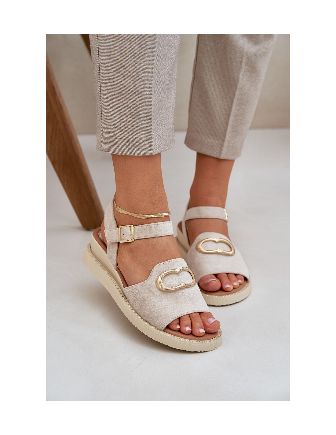 Jezzi prekės ženklo moteriški sandalai. Pagaminta iš ekologiškos zomšos, tai elegantiškas ir patogus pasiūlymas šiltoms dienoms. Sumontuoti ant pleišto, jie suteikia lengvumo ir stabilumo, užtikrina komfortą visą dieną. Dekoratyvinė detalė priekyje suteikia subtilaus žavesio. Užsegamas reguliuojamu dirželiu su sagtimi, todėl jie puikiai priglunda prie pėdos. Šios basutės puikiai derina stilių ir funkcionalumą, puikiai dera su vasariniais drabužiais. Renkantis dydį, vadovaukitės dydžių lentele.
