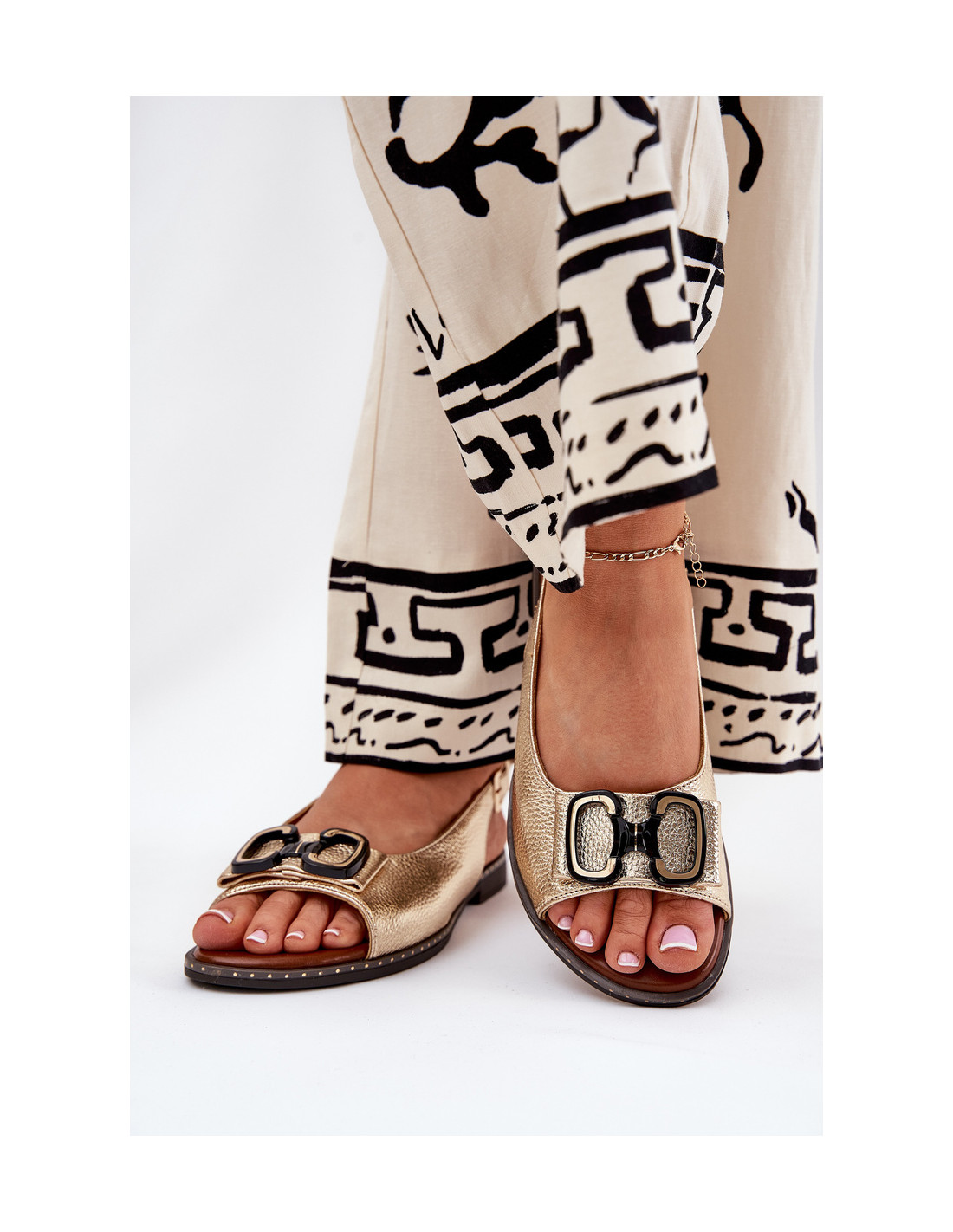 Plokšti sandalai su puošmena Eco Leather Gold Lilria