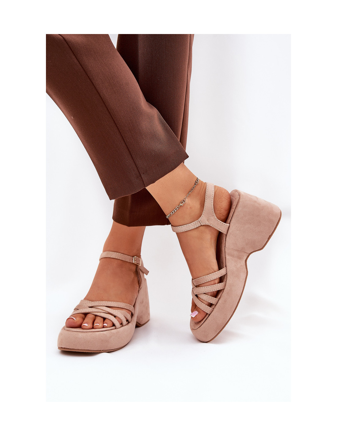 Platforminiai ir pleištiniai sandalai iš Eco Suede Beige Nendal