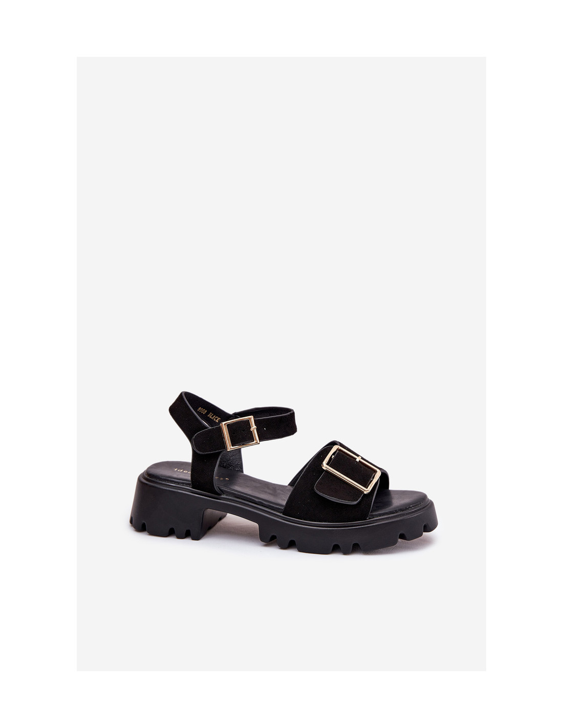 Elegantiški moteriški sandalai iš ekologiškos zomšos, pastatyti ant platformos ir plokščio kulno, kurie suteikia komforto ir stabilumo. Batų priekį puošia didelė auksinė sagtis, kuri suteikia subtilios elegancijos ir charakterio. Užsegamas reguliuojamu dirželiu su sagtimi, todėl puikiai priglunda prie pėdos. Šios basutės – puikus pasirinkimas šiltoms dienoms, derančios tiek prie suknelių, tiek prie kelnių, derinančios stilių ir patogumą kiekvienoje aprangoje. Renkantis dydį, vadovaukitės dydžių lentele.