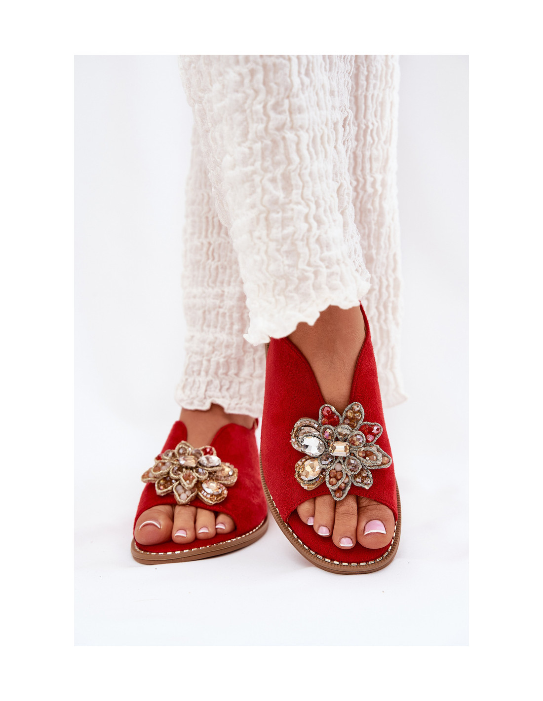 Moteriškos plokščios basutės su puošmena S.Barski KV27-001 Raudona