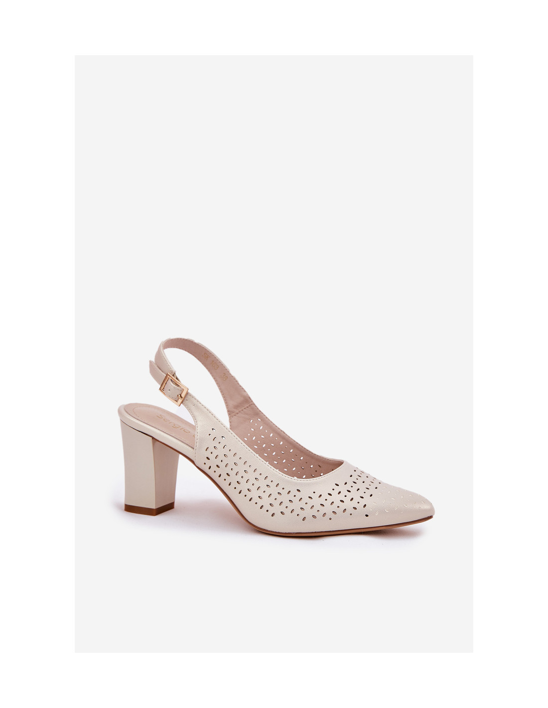 Moteriškos basutės iš eko odos, dekoruotos ažūriniu raštu – elegantiškas pasirinkimas šiltoms dienoms. Smailūs pirštai subtiliai plonina kojas, todėl jos atrodo lieknesnės. Užsegama sagtimi su reguliuojamu dirželiu, todėl jie puikiai priglunda prie pėdos. Blokinis kulnas suteikia stabilumo, o visumoje dera stilius ir patogumas, puikiai derantis prie vasarinių suknelių, sijonų ar elegantiškų kelnių. Renkantis dydį, vadovaukitės dydžių lentele.