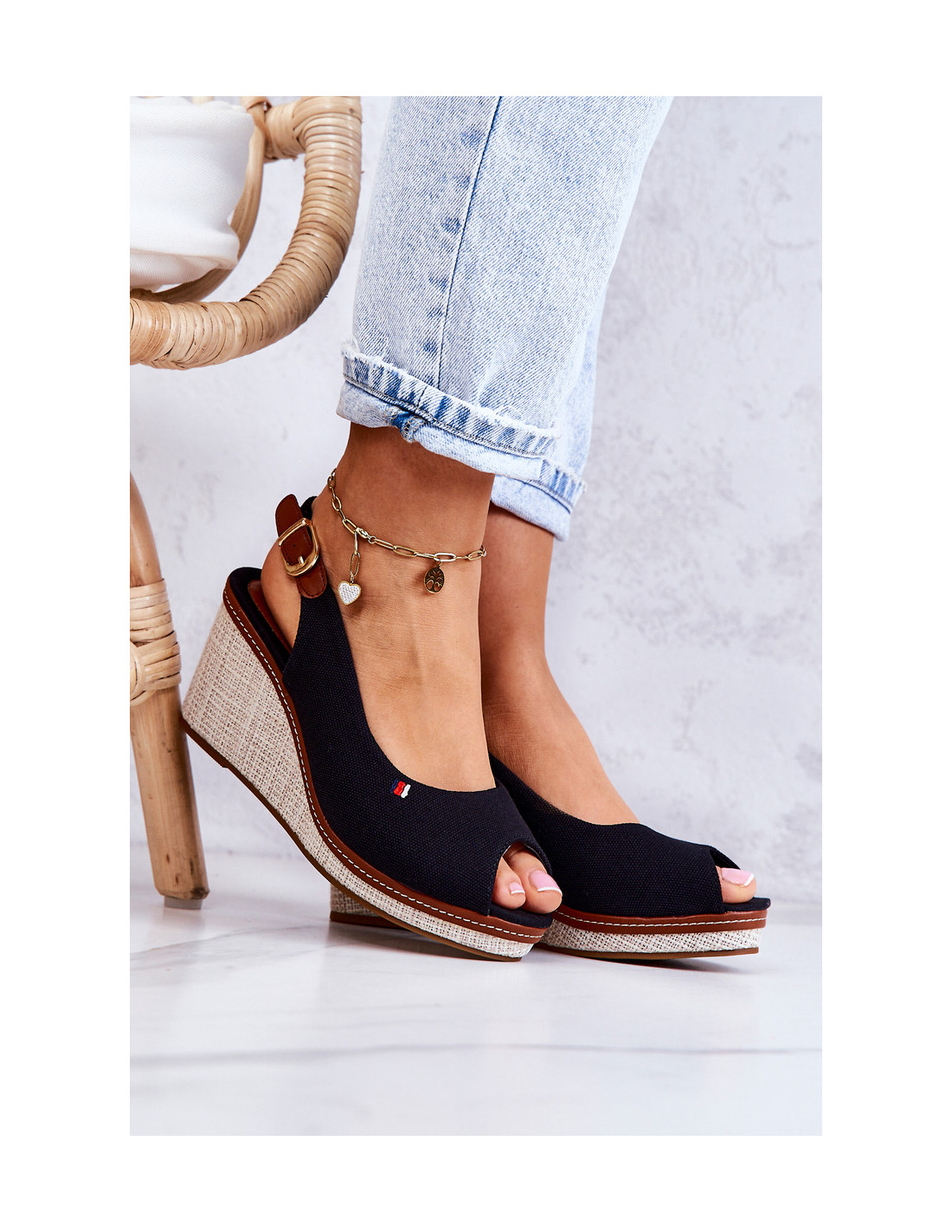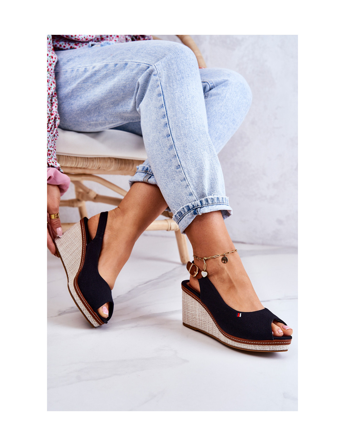 Gražūs ir patogūs sandalai, tvirtinami ant kulno pleišto pavidalu. Madingos spalvos ir nesenstantis dizainas. Sandalai turi neslidų padą ir pintą pleištą. Pagaminta iš tekstilės medžiagos. Jie turi reguliuojamą dirželį, užsegamą sagtimi. Jie turi atvirą kulną ir pirštus. Vidpadis pagamintas iš medžiagos ir eko odos įdėklų derinio. Būtinai peržiūrėkite visą mūsų moteriškų basučių asortimentą! Renkantis dydį, naudokite dydžių lentelę.