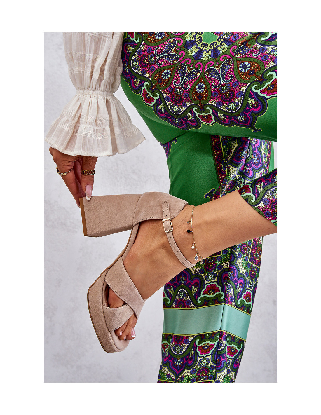 Moteriški zomšiniai aukštakulniai sandalai Leski Batai 3221 Beige