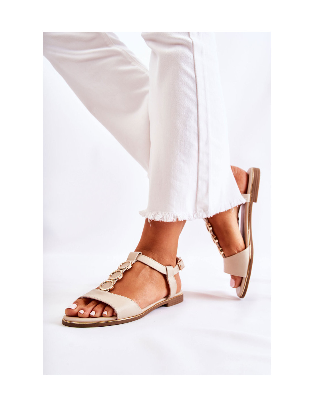 Moteriški klasikiniai sandalai su dekoratyviniu dirželiu smėlio spalvos Terina