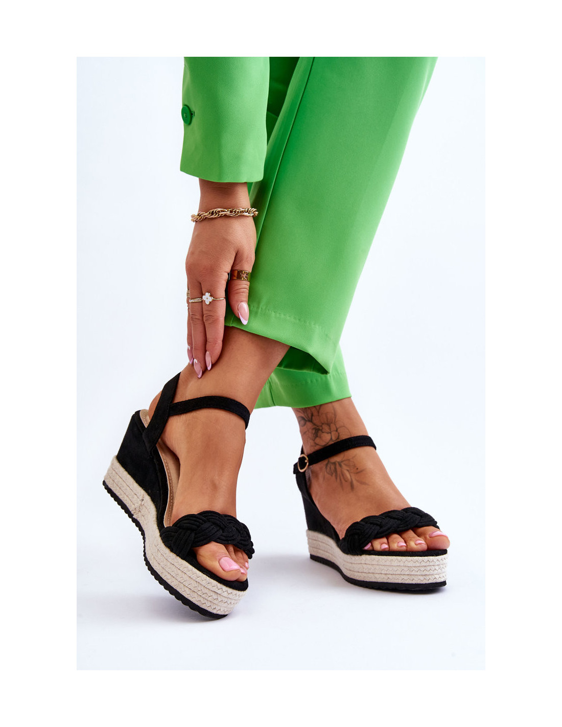 Klasikiniai zomšiniai pleištiniai sandalai, juodi Denisse