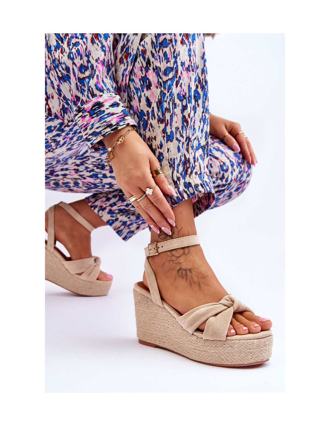 Pleištinės basutės yra klasikinė tarp moteriškos vasarinės avalynės. Pleištas buvo papuoštas džiuto pynute. Minkštas vidpadis iš eko odos užtikrina aukštą naudojimo komfortą. Viršutinė dalis pagaminta iš minkštos eko odos. Batai užsegami reguliuojamu dirželiu su sagtimi. Šie sandalai yra puikus pasirinkimas vasaros stiliui. Rinkdamiesi dydį, žiūrėkite dydžių lentelę.