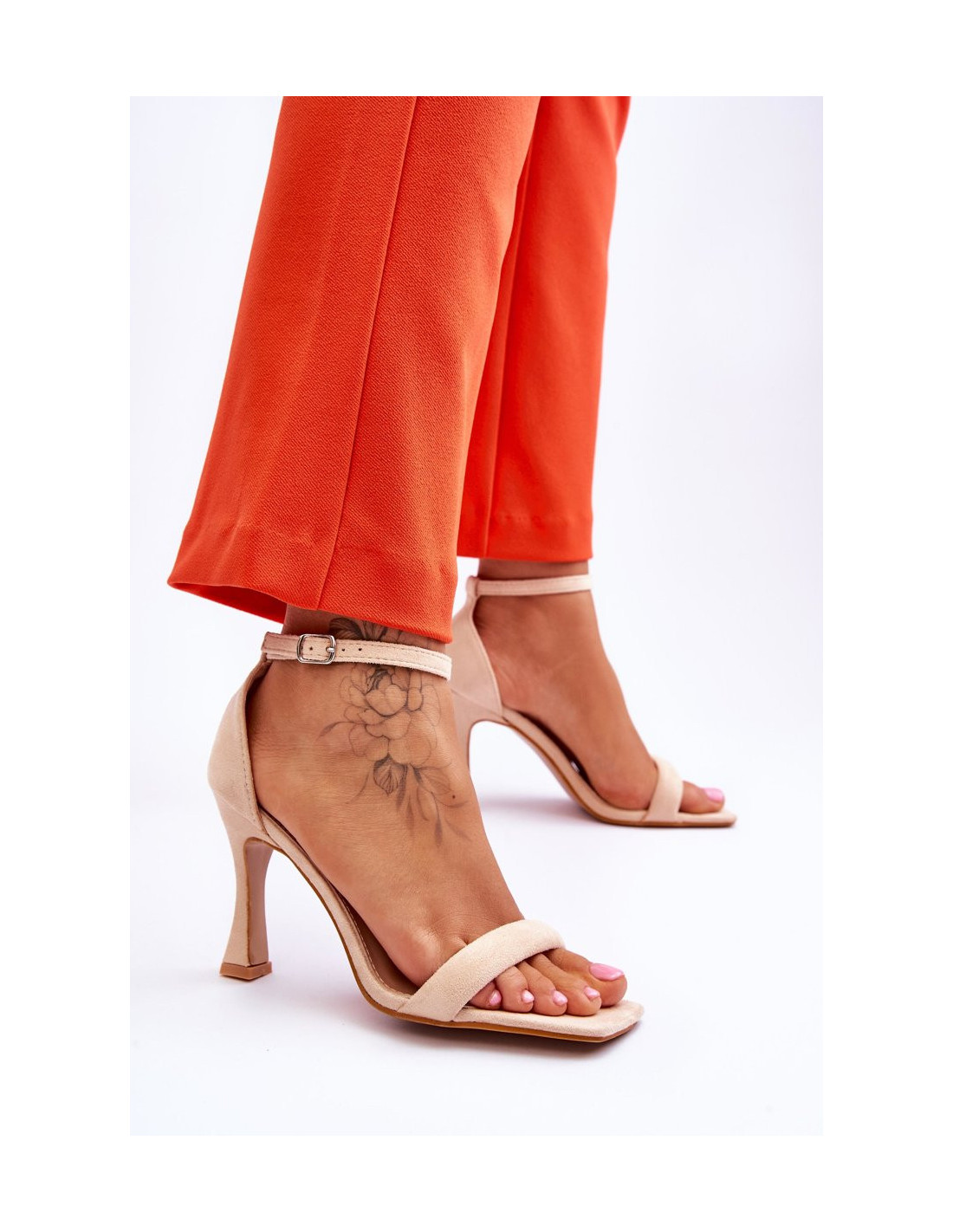 Gražūs moteriški sandalai, pagaminti iš malonios liesti ekologiškos zomšos. Priekyje esantis dirželis ir kulnas sutvirtinti. Modelis su reguliuojamu dirželiu, užsegamu sagtimi. Minkštas, eko odos vidpadis užtikrins komfortą naudojant avalynę. Sandalai buvo nustatyti ant kulno smeigtuko pavidalu. Puikus modelis prie suknelės ar elegantiškų kelnių. Rinkdamiesi dydį, žiūrėkite dydžių lentelę.