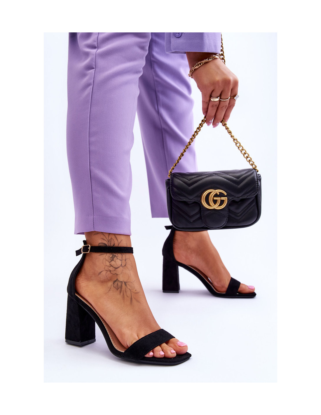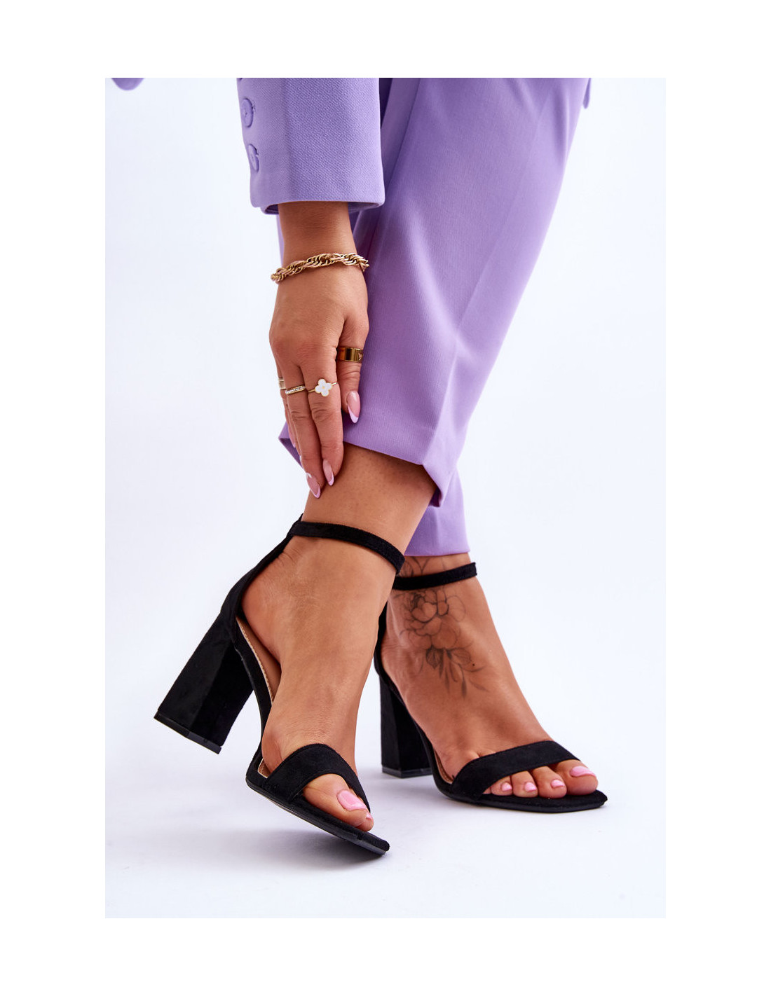 Klasikiniai aukštakulniai sandalai stabiliame stulpelyje. Pagaminta iš ekologiškos zomšos. Šie batai turi atvirą, kvadratinį nosį. Užsegama aplink kulkšnį reguliuojamu dirželiu su sagtimi. Sandalai turi standintą kulno atlošą ir eko odos įdėklą, kuris yra minkštas ir patogus naudoti. Šis modelis pavogs daugelio aukštakulnius mėgstančių moterų širdį! Rinkdamiesi dydį žiūrėkite dydžių lentelę.