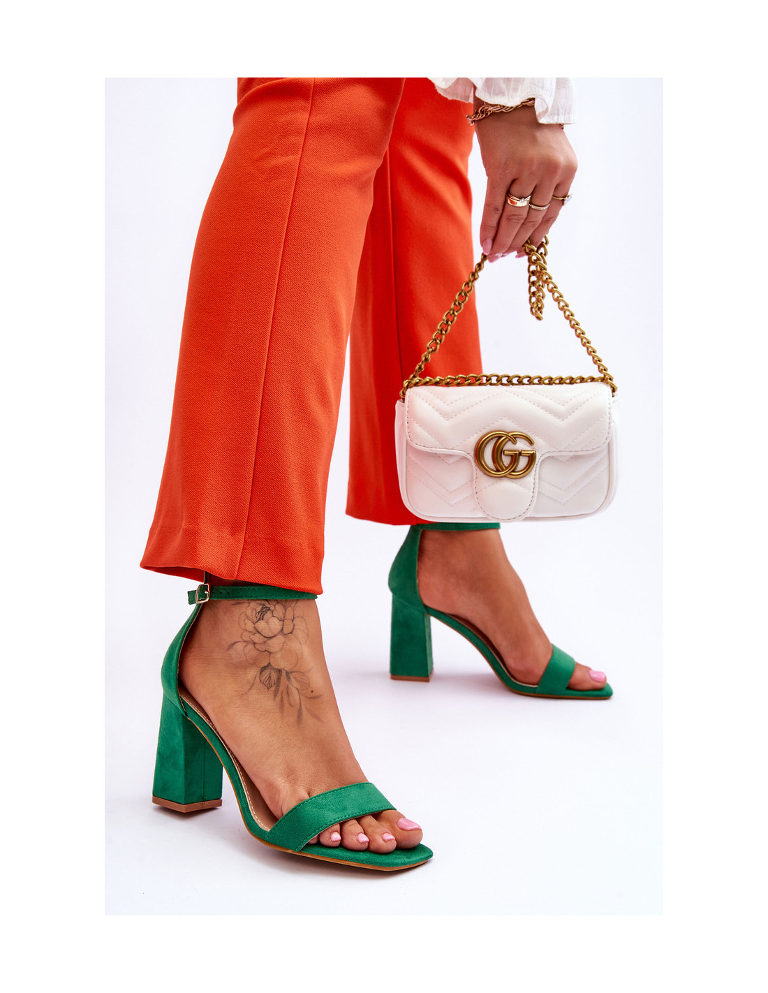 Klasikiniai aukštakulniai sandalai stabiliame stulpelyje. Pagaminta iš ekologiškos zomšos. Šie batai turi atvirą, kvadratinį nosį. Užsegama aplink kulkšnį reguliuojamu dirželiu su sagtimi. Sandalai turi standintą kulno atlošą ir eko odos įdėklą, kuris yra minkštas ir patogus naudoti. Šis modelis pavogs daugelio aukštakulnius mėgstančių moterų širdį! Rinkdamiesi dydį žiūrėkite dydžių lentelę.