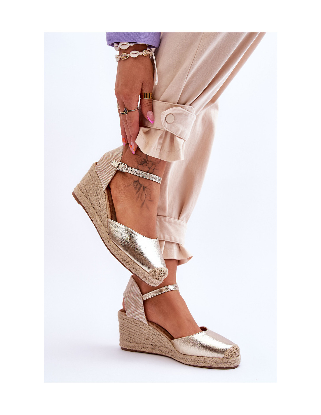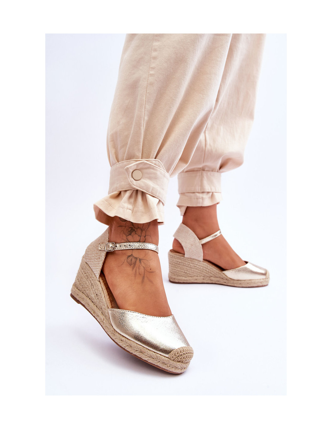 Odinės Espadrilės Pleištinės Sandalai Auksinės kameros
