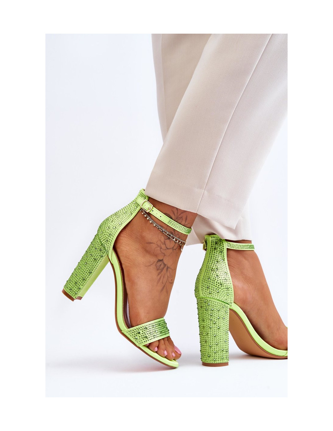 Moteriškos aukštakulnės basutės su cirkonio spalvos žaliais idealistiniais