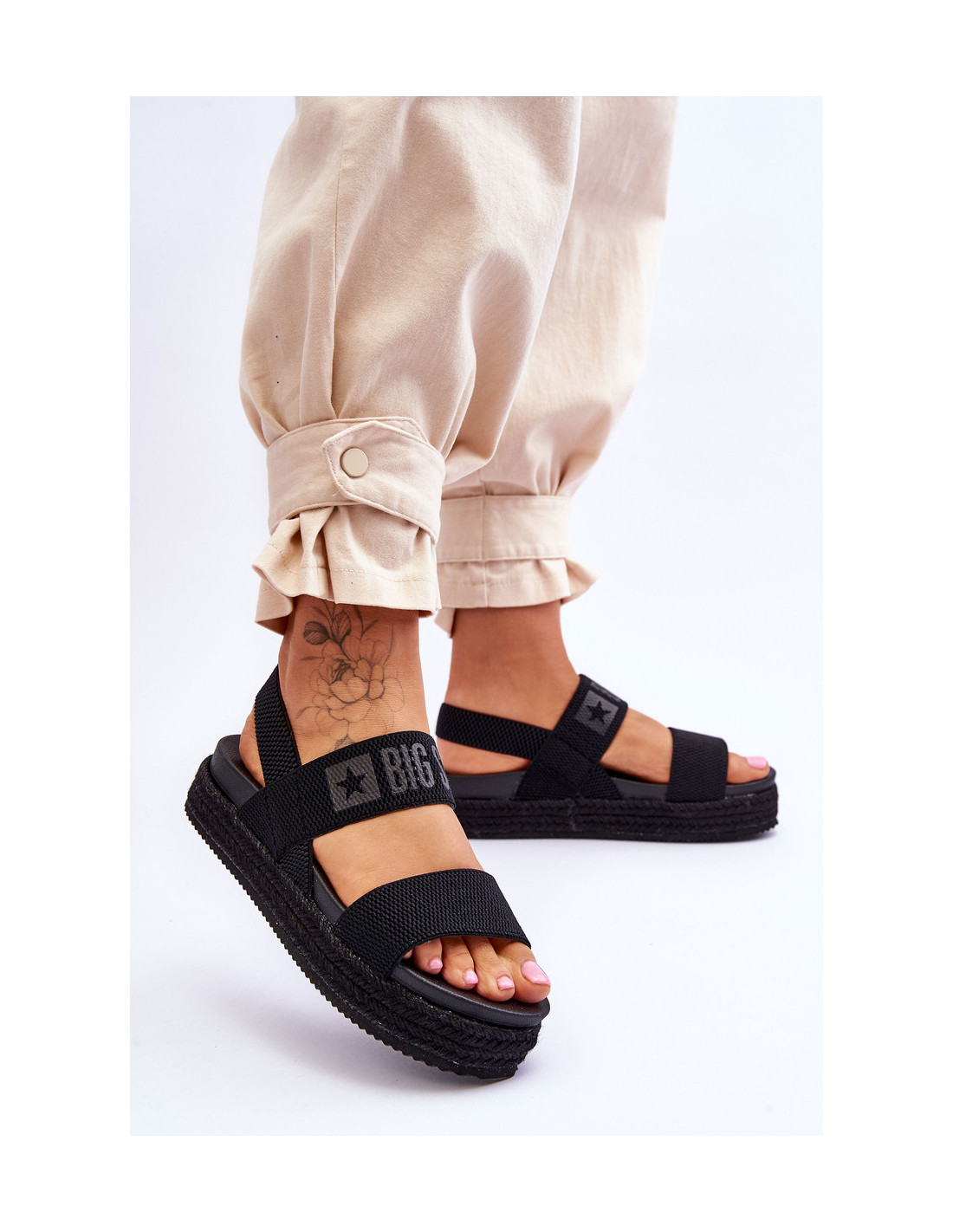 Lengvi, moteriški Big Star prekės ženklo sandalai yra pagaminti iš tekstilės. Šis modelis yra ištraukiamas. Elastinė juosta leis lengviau apsiauti batus. Sandalai buvo dedami ant masyvios platformos, papuoštos džiuto pynute. Sandalai turi plastikinį įdėklą. Būtinai peržiūrėkite kitus Big Star prekės ženklo sandalų modelius! Rinkdamiesi dydį, žiūrėkite dydžių lentelę.