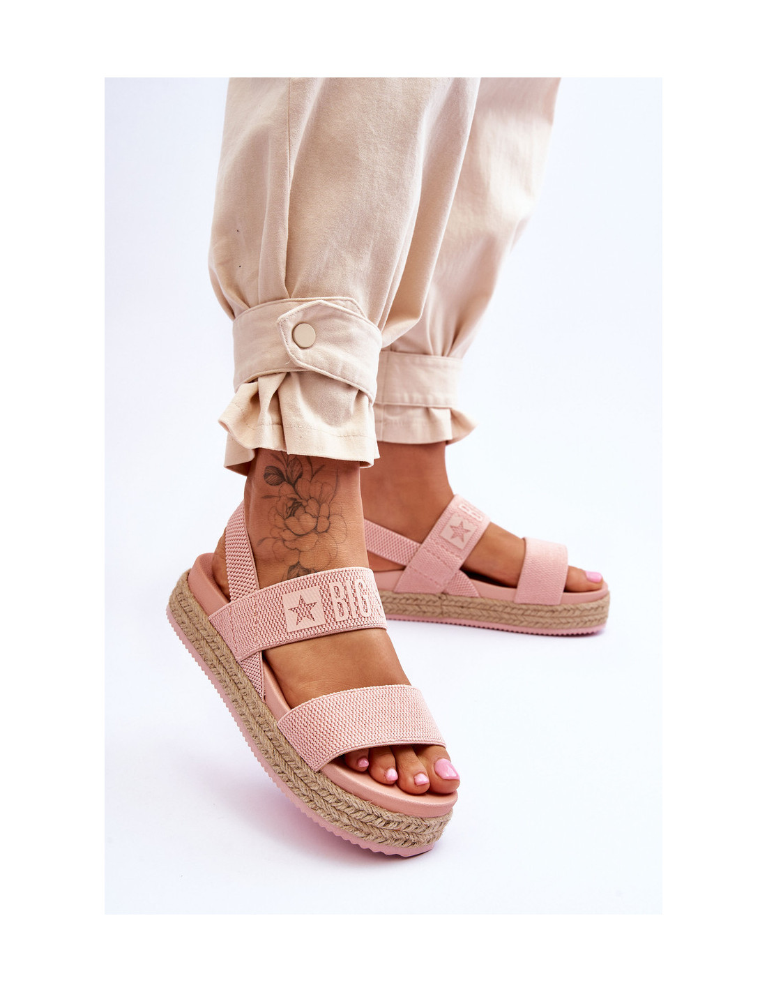 Lengvi, moteriški Big Star prekės ženklo sandalai yra pagaminti iš tekstilės. Šis modelis yra ištraukiamas. Elastinė juosta leis lengviau apsiauti batus. Sandalai buvo dedami ant masyvios platformos, papuoštos džiuto pynute. Sandalai turi plastikinį įdėklą. Būtinai peržiūrėkite kitus Big Star prekės ženklo sandalų modelius! Rinkdamiesi dydį, žiūrėkite dydžių lentelę.