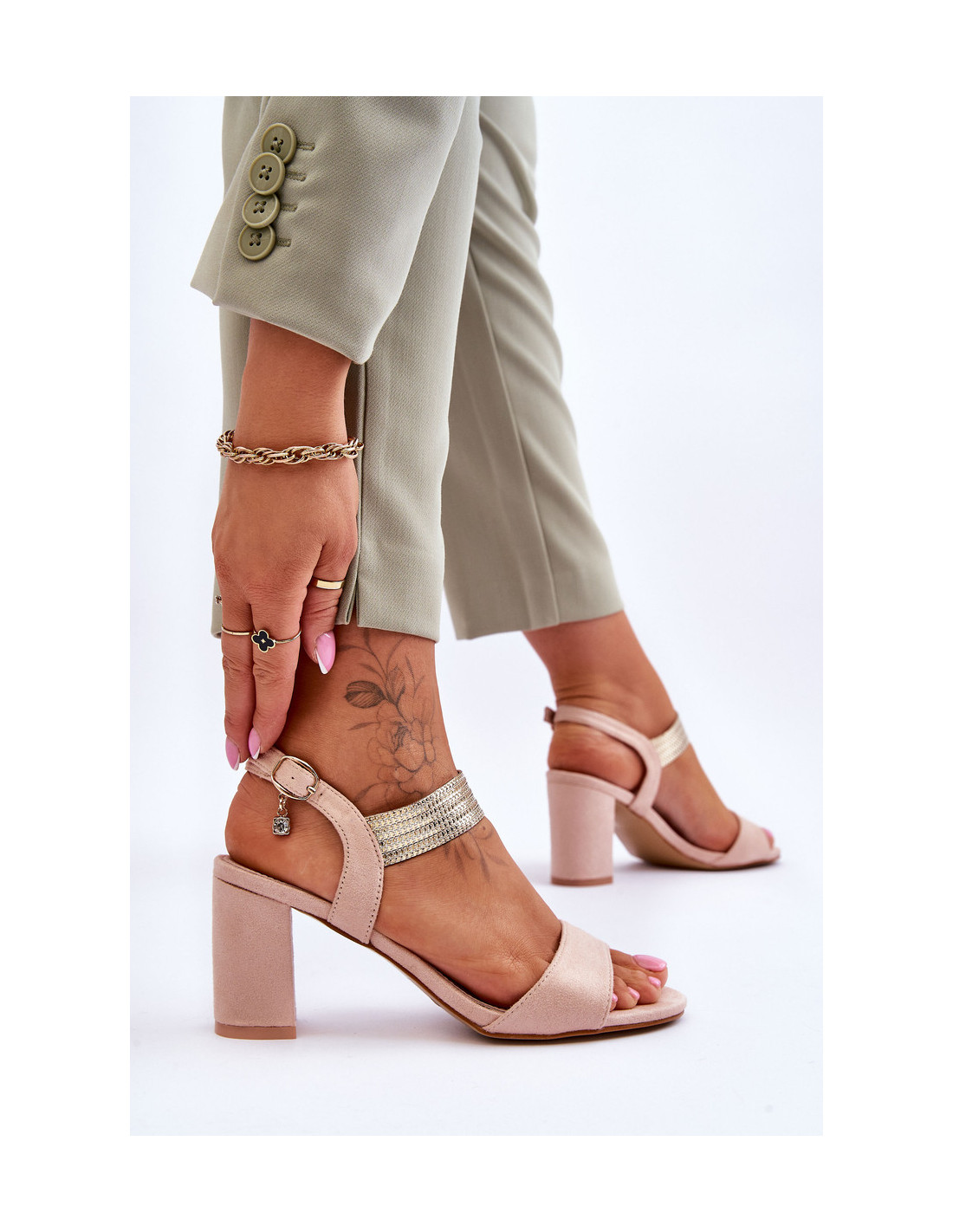 Patogūs sandalai – kiekvienos moters svajonė! Subtilus stulpelis ir gerai profiliuotas odinis vidpadis garantuos jūsų gerovę. Gražios spalvos ir medžiaga, iš kurios jie buvo pagaminti, tikrai privers jus pastebėti! Sandalai užsegami juostele aplink kulkšnį ir turi papildomą, dekoruotą dirželį. Rinkdamiesi dydį žiūrėkite dydžių lentelę.