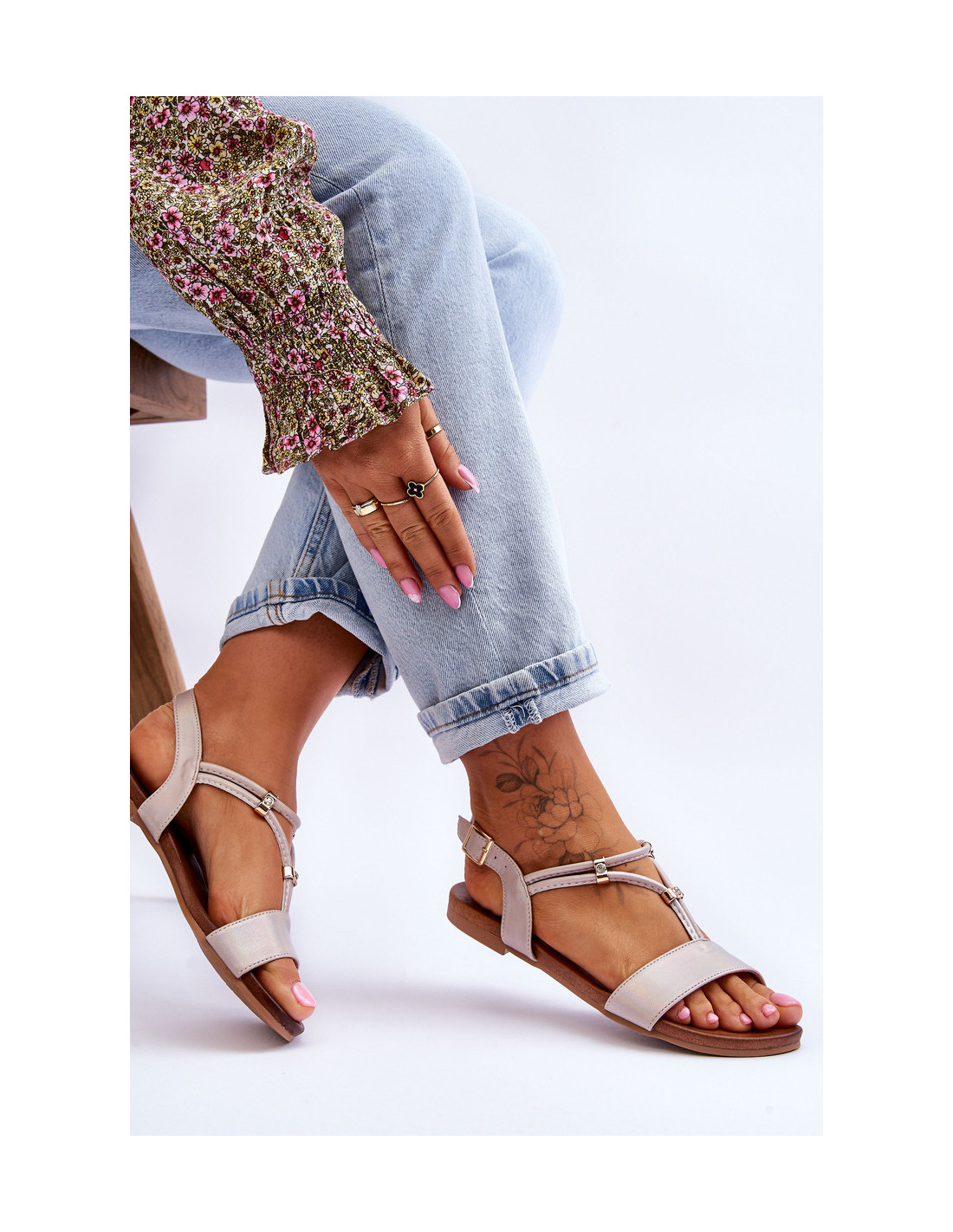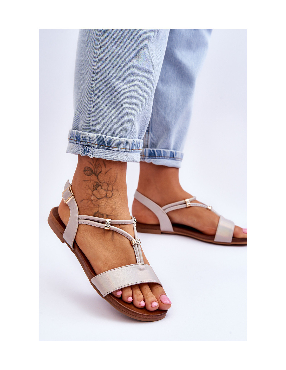 Sandalai plokščiais kulnais, kurių padas pagamintas iš guminės medžiagos, kuri papildomai neslysta. Batai turi eko odos dirželius ir minkštą vidpadį, kuris pasirūpins Jūsų patogumu naudojimo metu. Užsegama sagtimi aplink kulkšnį su reguliuojamu dirželiu. Ant juostelių dedami dekoratyviniai kalnų krištolai, imituojantys akmenukus. Erdvus modelis, puikiai tinkantis vasarai. Jūs tikrai turėtumėte juos turėti! Renkantis dydį, naudokite dydžių lentelę.