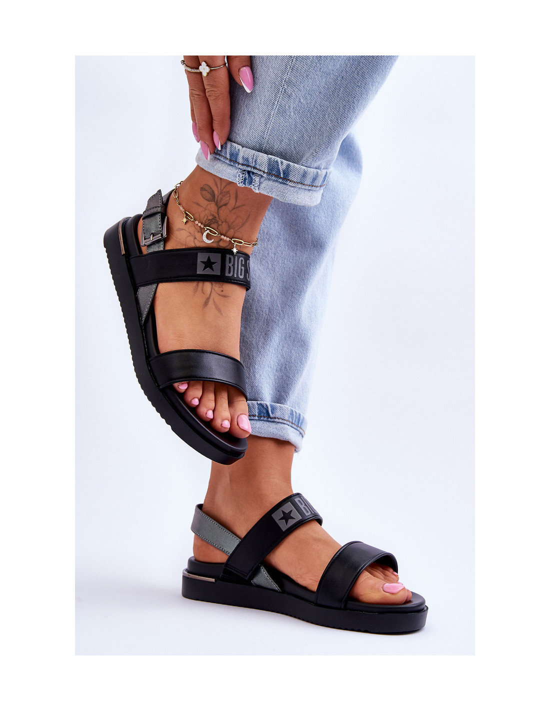 Klasikiniai moteriški sandalai yra pagaminti iš ekologiškos odos ir audinio derinio. Šis modelis užsegamas reguliuojamu dirželiu su sagtimi. Sandalai pastatyti ant subtilios platformos. Įdėklas ir platforma pagaminti iš plastiko. Puikus modelis šiltoms dienoms! Būtinai apžiūrėkite ir kitus Big Star moteriškų basučių modelius! Rinkdamiesi dydį žiūrėkite dydžių lentelę.