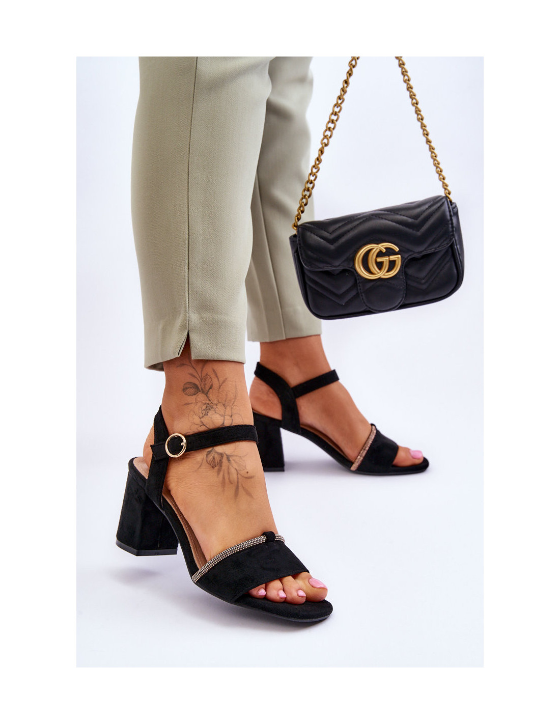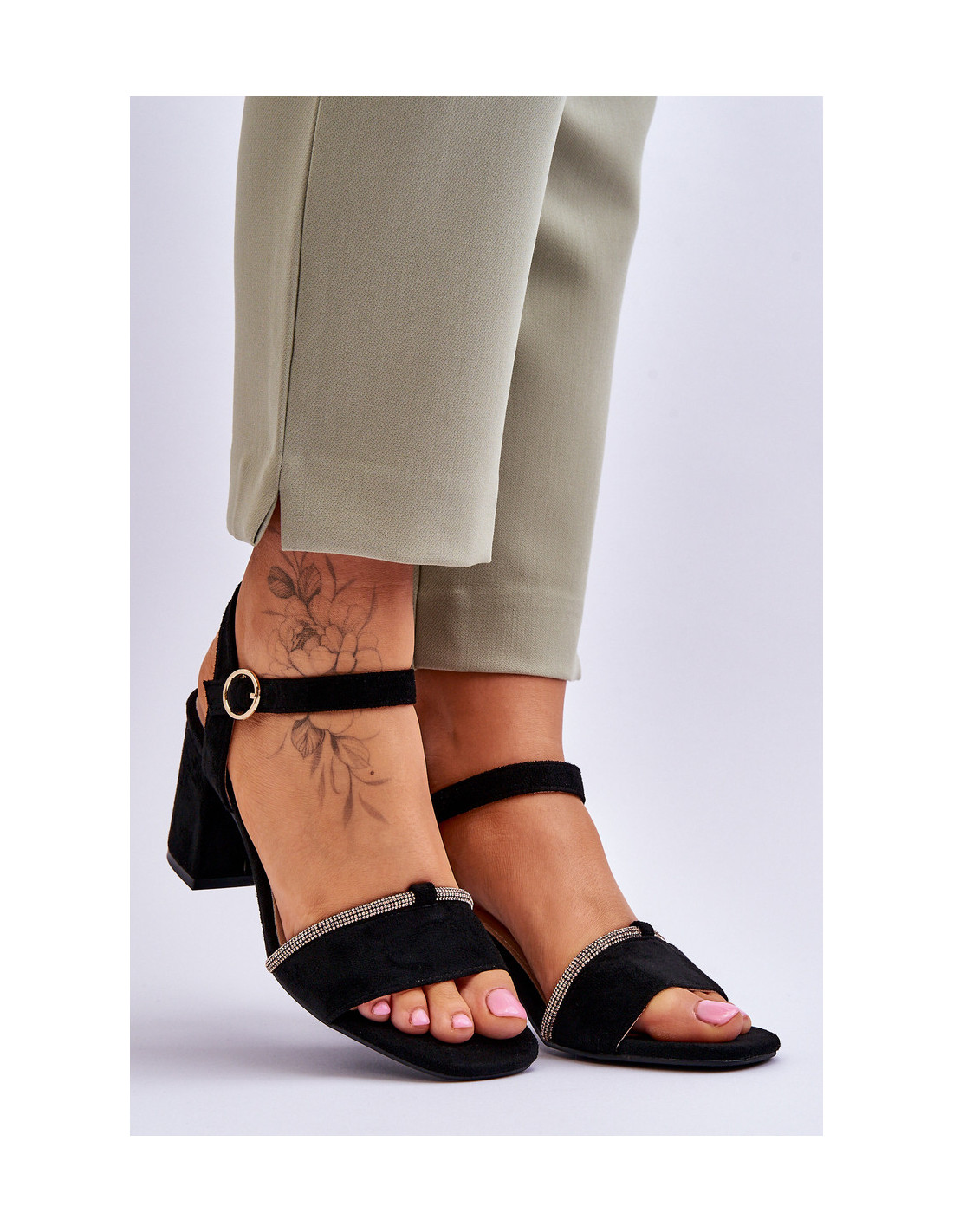 Moteriški stulpelio formos sandalai su kulnais. Šis modelis pagamintas iš malonios liesti ekologiškos zomšos. Sandalai užsegami reguliuojamu dirželiu su sagtimi. Vidpadis pagamintas iš natūralios odos. Jis itin minkštas ir patogus naudoti. Jūs tikrai turėtumėte juos turėti! Rinkdamiesi dydį, žiūrėkite dydžių lentelę.