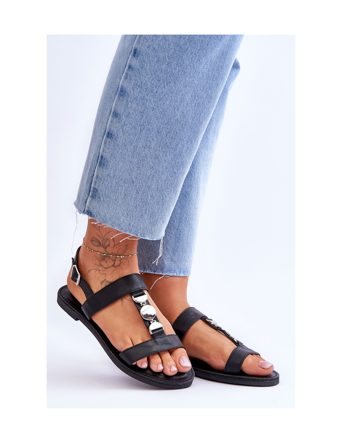 Moteriškos basutės yra pagamintos iš ekologiškos odos. Šis modelis turi papuošimą ant dirželio apskritimų pavidalu. Sandalai užsegami reguliuojamu dirželiu su sagtimi. Patogus vidpadis iš eko odos užtikrins komfortą naudojant avalynę. Sandalai yra ant plokščio kulno su neslidžiu padu. Rinkdamiesi dydį, vadovaukitės dydžių lentele.