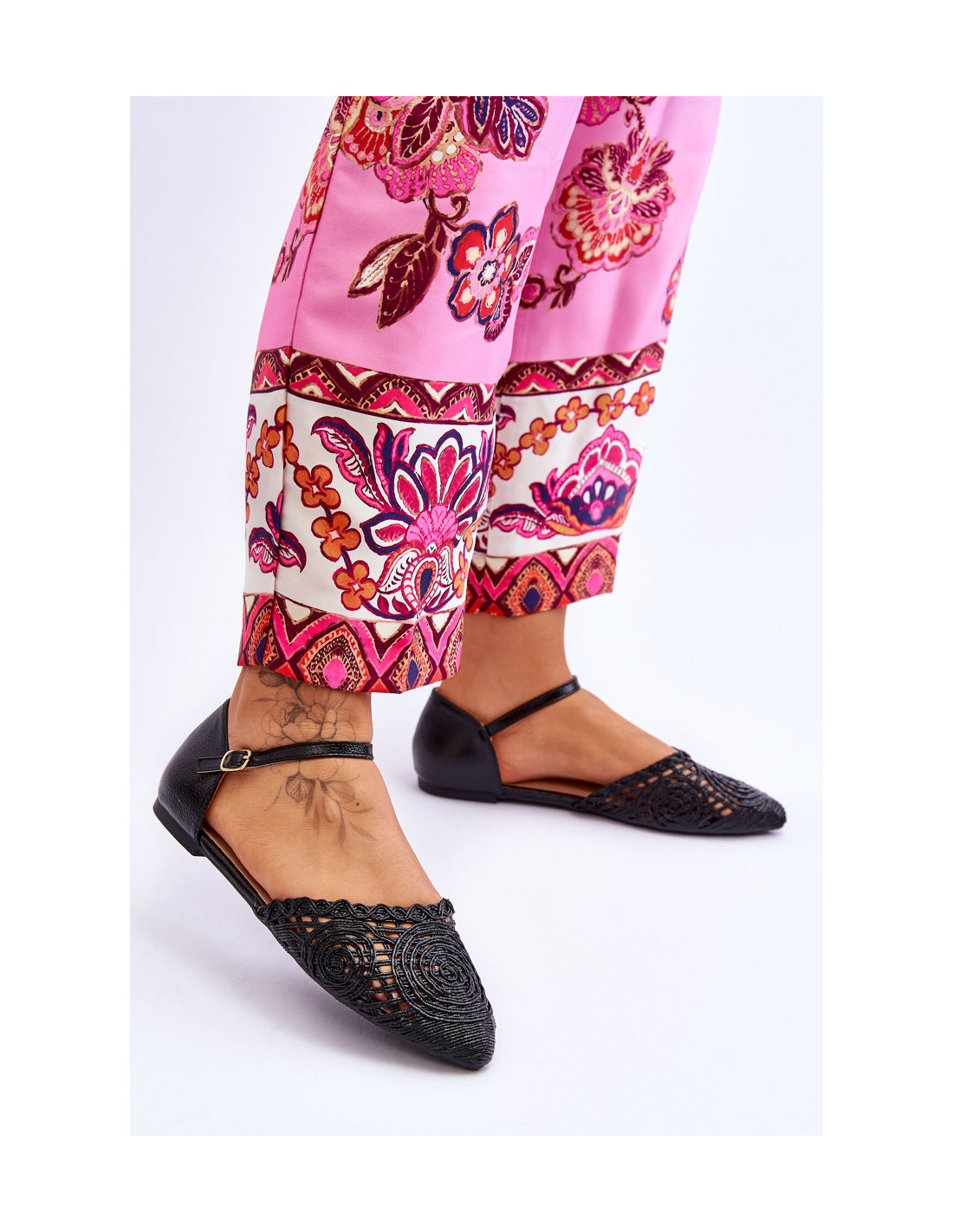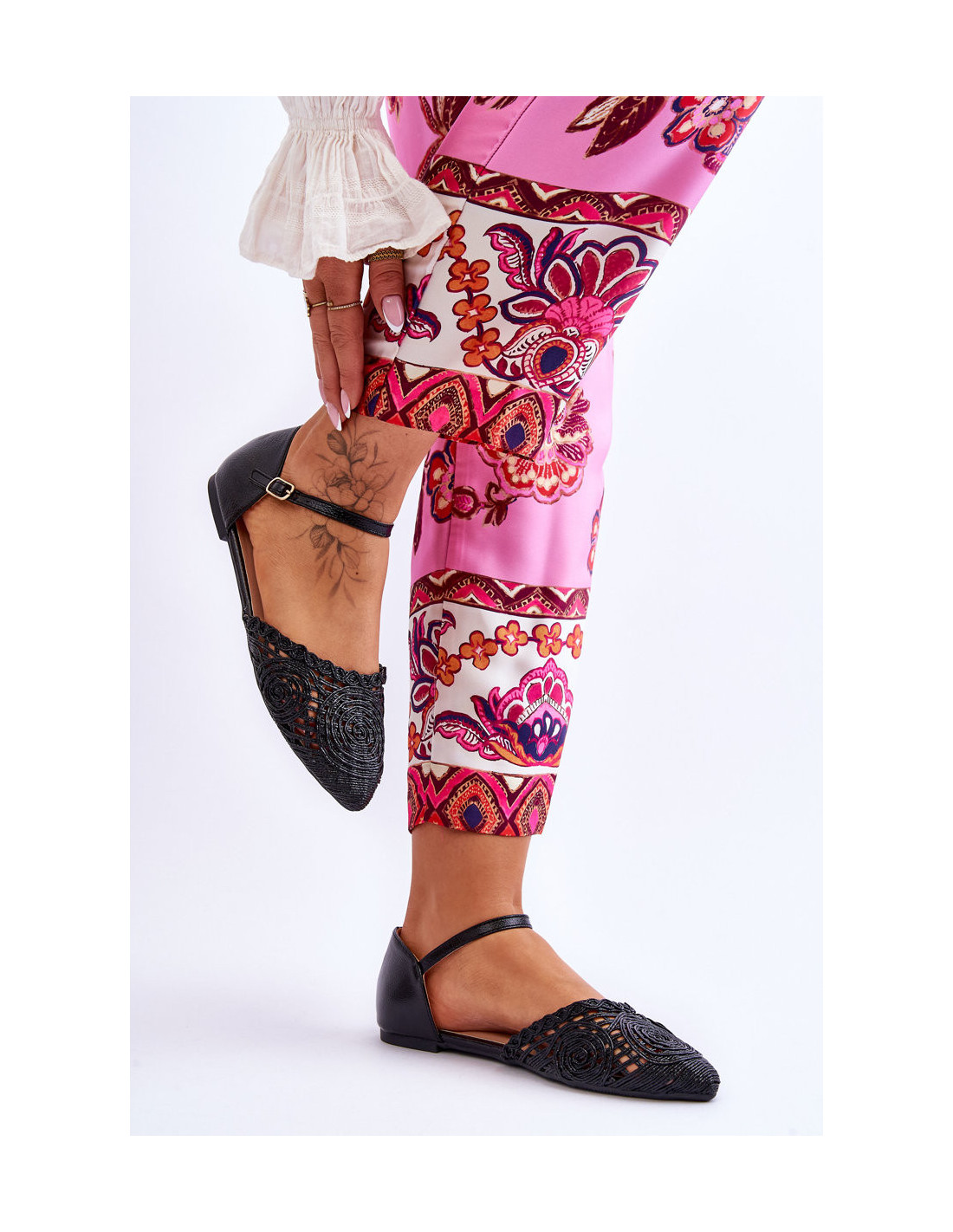 Madingi moteriški sandalai yra pagaminti iš plastiko ir ekologiškos odos. Jie turi ažūrinį raštą priekyje. Sandalai buvo pastatyti ant plokščio kulno ir guminio pado. Jie turi smailų pirštą ir standų kulną. Šis modelis puikiai derės prie erdvių suknelių. Rinkdamiesi dydį, žiūrėkite dydžių lentelę.