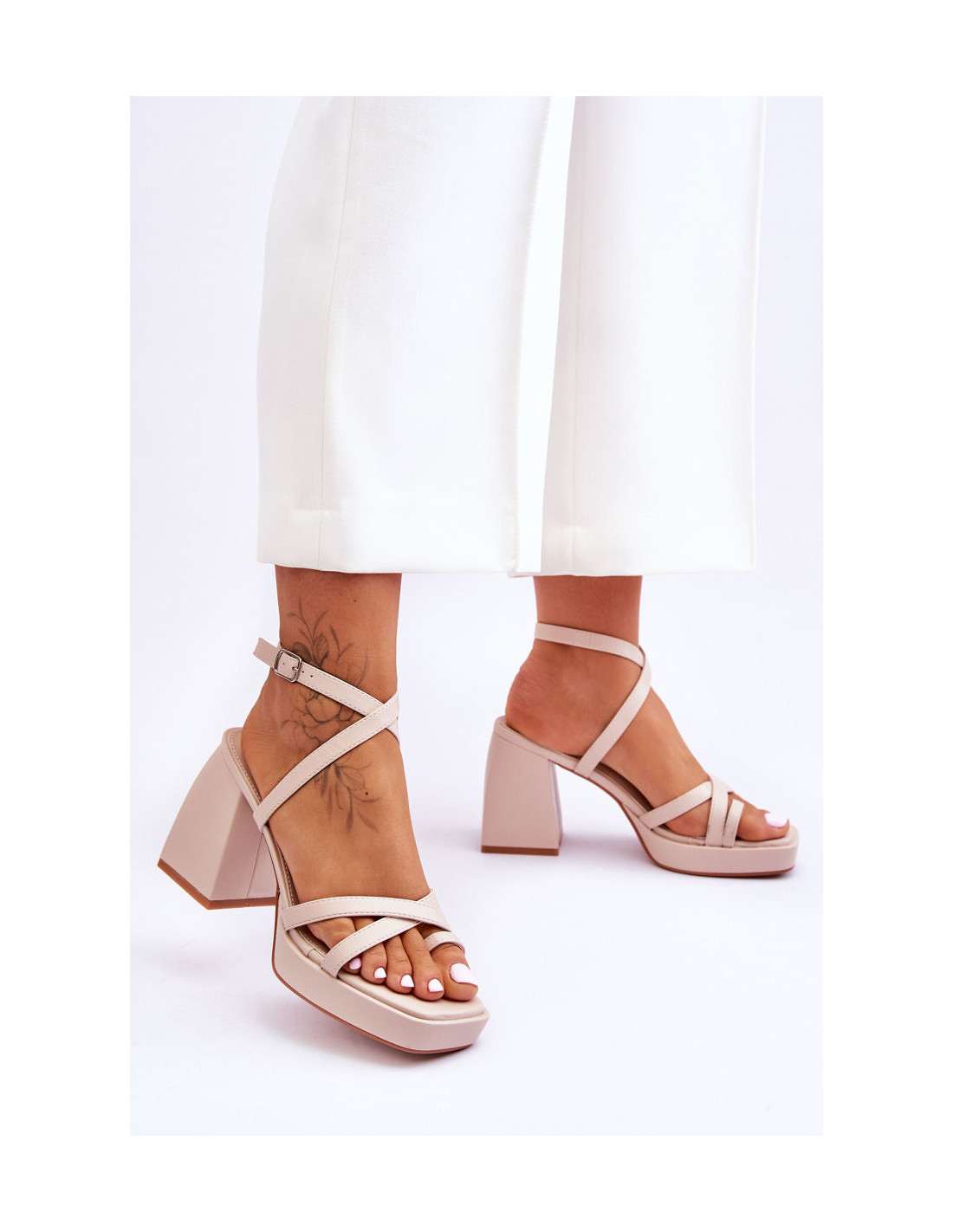 Madingi aukštakulniai ir platforminiai sandalai smėlio spalvos Secret Rose