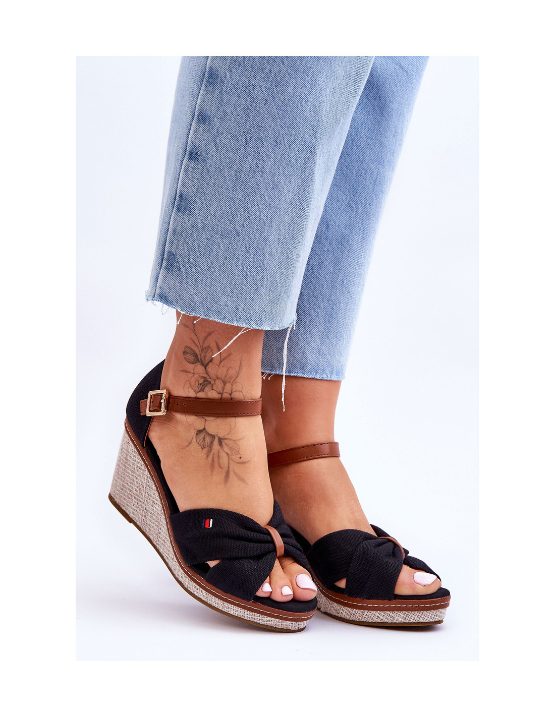 Moteriški sandalai ant pinto pleišto Juoda Judith