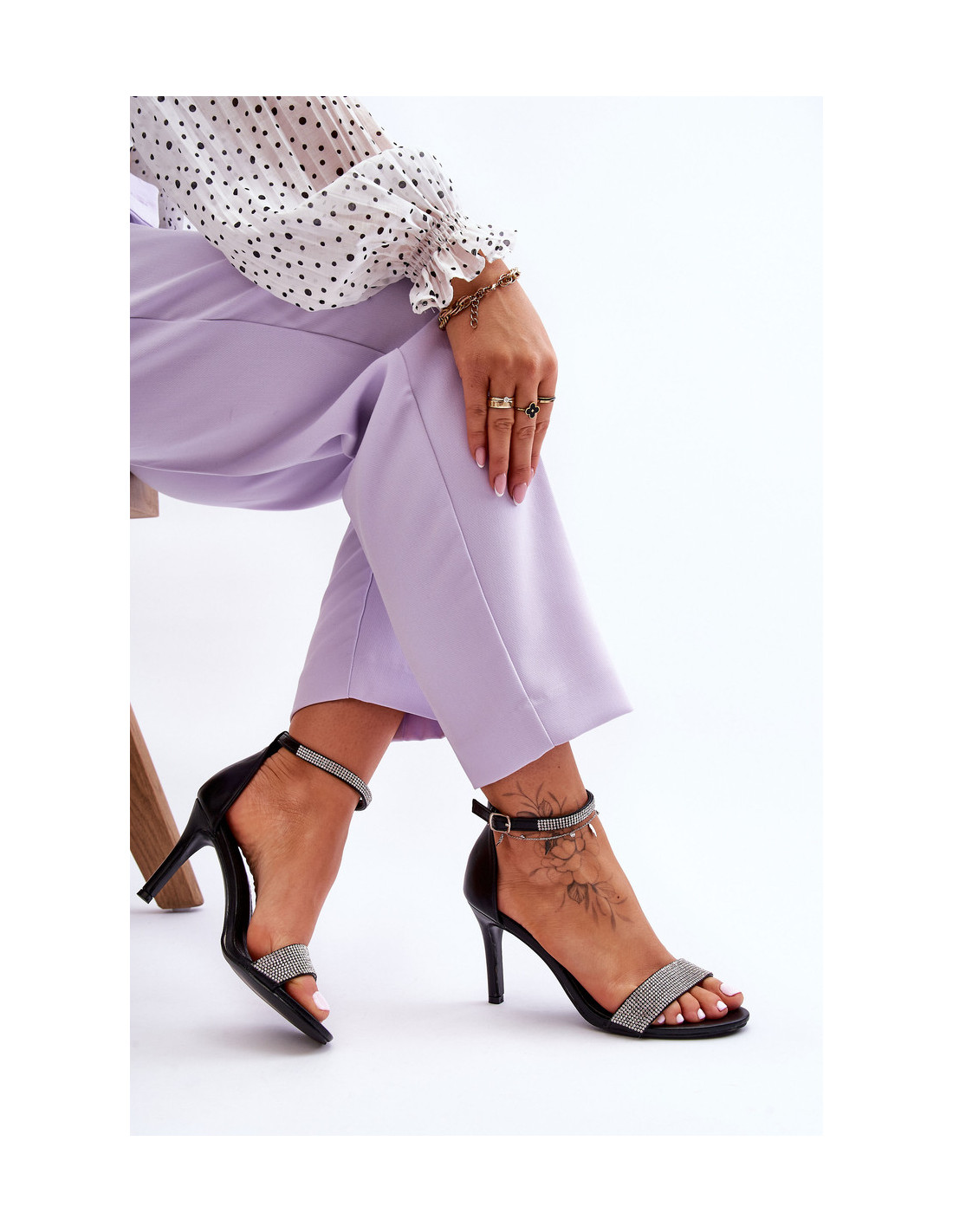 Moteriški sandalai ant aukšto kulno su cirkonio akmenimis Black Perfecto