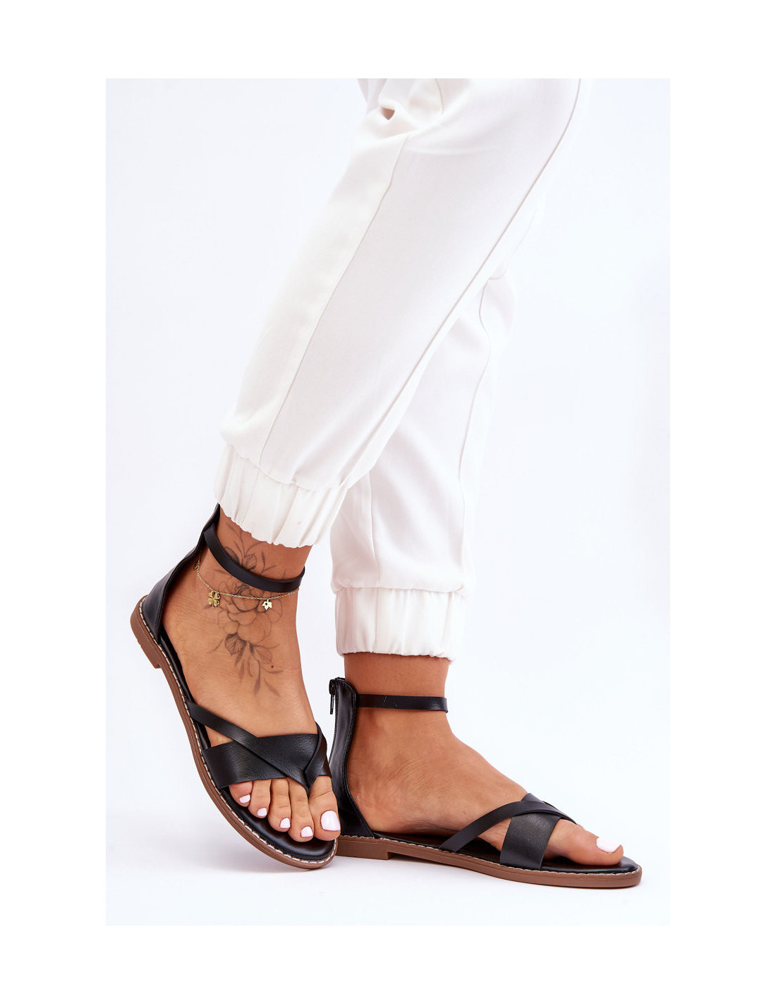 Klasikiniai moteriški sandalai yra pagaminti iš ekologiškos odos. Šis modelis užsegamas užtrauktuku viršutinėje dalyje. Šlepetės stiliaus sandalai turi susiuvimą aplink padą. Komplektukas ant plokščio kulno ir guminio, neslystančio pado. Šios šlepetės puikiai tiks šiltesnėms dienoms!Rinkdamiesi dydį vadovaukitės dydžių lentele.