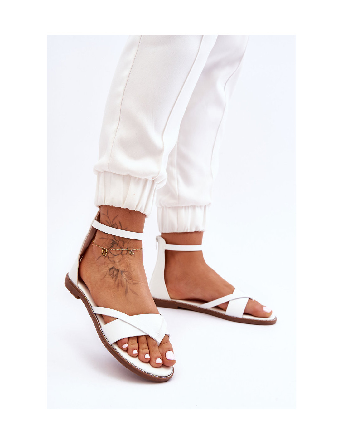 Klasikiniai moteriški sandalai yra pagaminti iš ekologiškos odos. Šis modelis užsegamas užtrauktuku viršutinėje dalyje. Šlepetės stiliaus sandalai turi susiuvimą aplink padą. Komplektukas ant plokščio kulno ir guminio, neslystančio pado. Šios šlepetės puikiai tiks šiltesnėms dienoms!Rinkdamiesi dydį vadovaukitės dydžių lentele.