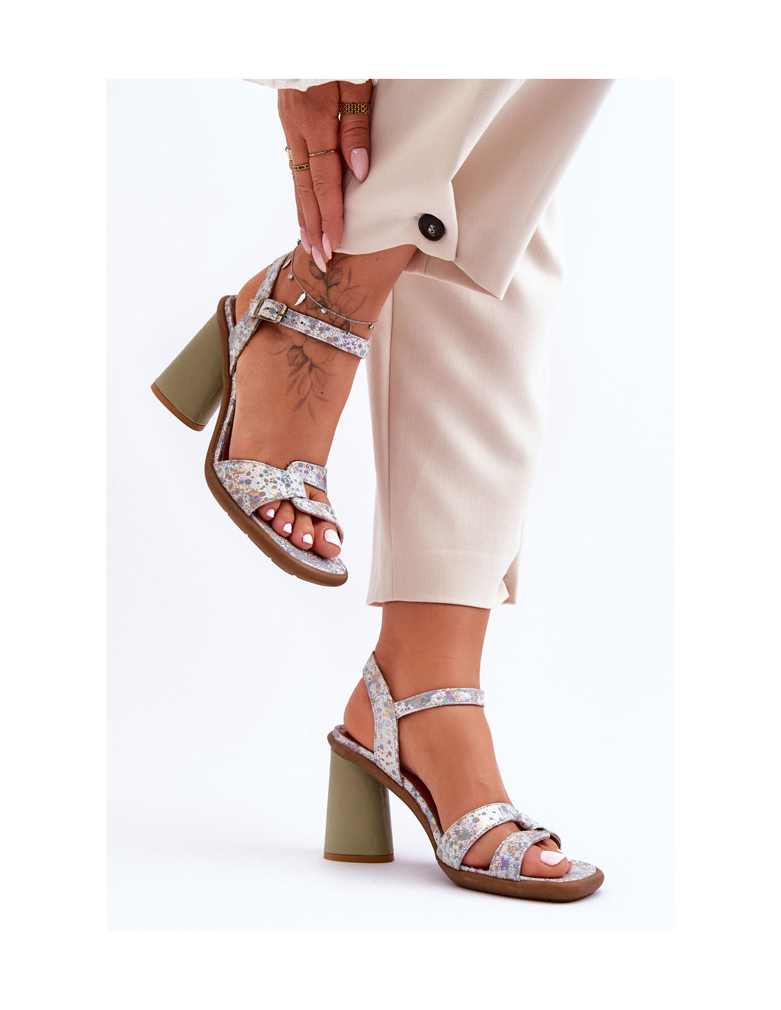 Odiniai sandalai ant kulno Maciejka 06029-24 balta-žalia