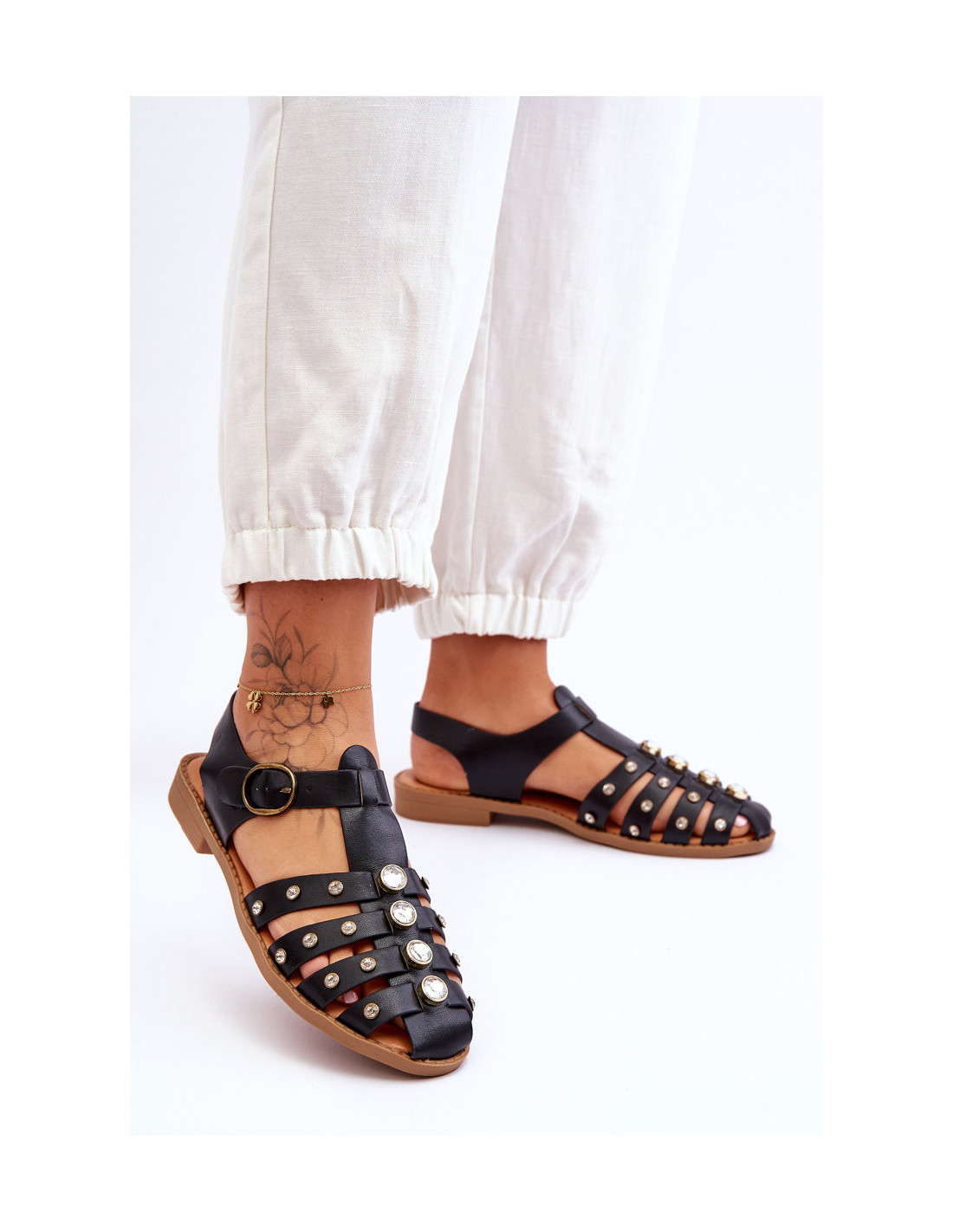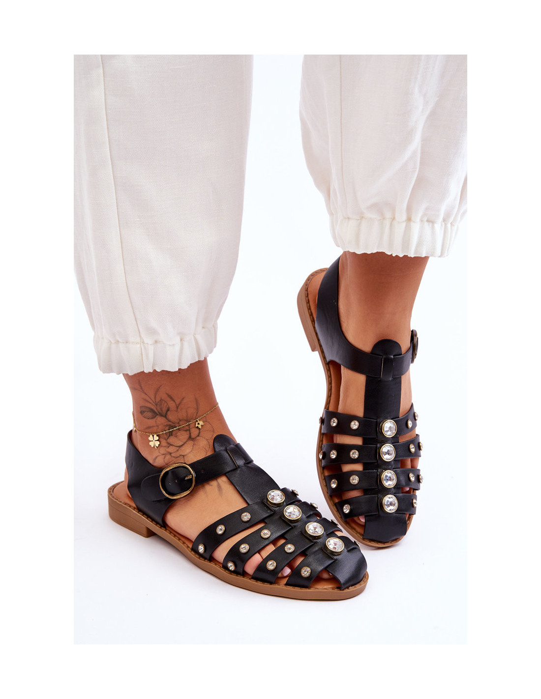 Moteriškos basutės yra pagamintos iš ekologiškos odos. Šiame modelyje yra dekoratyvūs purkštukai ant viso viršaus, imituojantys cirkonį. Klasikiškai užsegamas reguliuojamu dirželiu su sagtimi. Įdėklas yra minkštas ir patogus naudojimo metu. Šis itin erdvus modelis puikiai tiks karštoms vasaros dienoms! Sandalai yra ant plokščio kulno su neslidžiu padu. Renkantis dydį, vadovaukitės dydžių lentele.