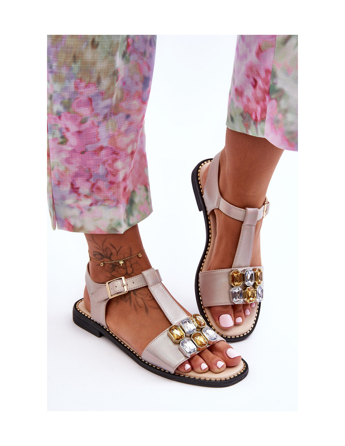 Šie moteriški sandalai pagaminti iš aukštos kokybės ekologiškos odos. Šis modelis papildomai papuoštas akmenimis. Šių batų vidpadis yra neįtikėtinai patogus ir pagamintas iš ekologiškos odos. Sandalai yra ant plokščio kulno, kurio padas dekoruotas smeigėmis. Būtinai peržiūrėkite ir kitus sandalų modelius mūsų svetainėje! Rinkdamiesi dydį, žiūrėkite dydžių lentelę.