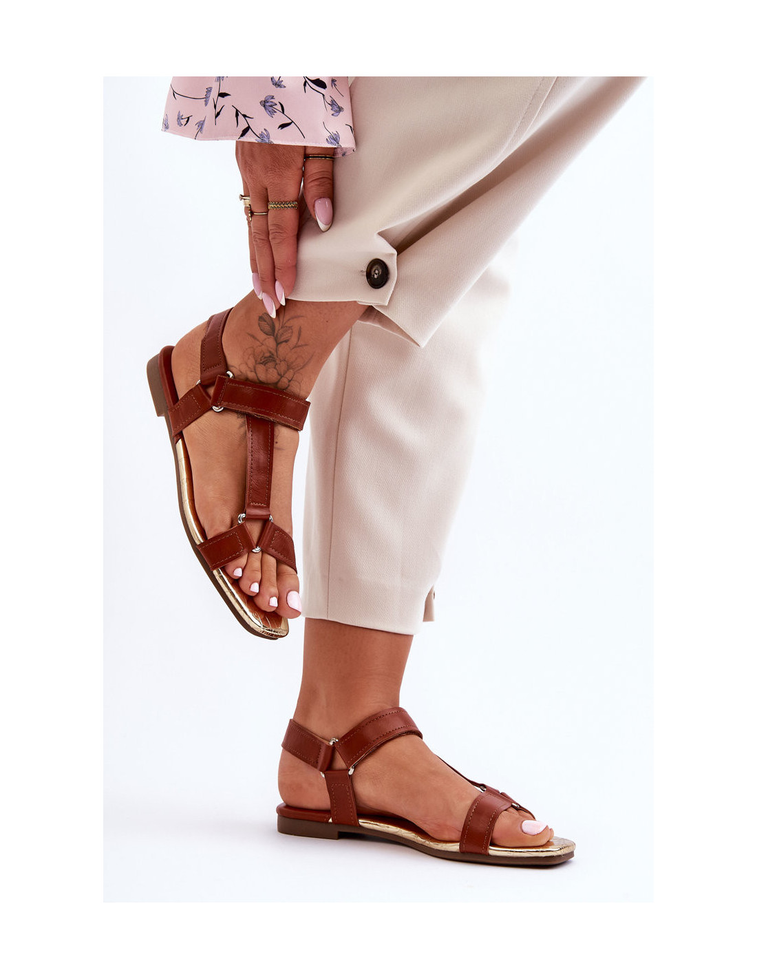 Klasikiniai moteriški sandalai buvo pagaminti iš ekologiškos odos. Šis modelis užsegamas velcro lipduku. Padas ir plokščias kulnas pagaminti iš guminės medžiagos, kuri suteikia stabilumo kiekviename žingsnyje. Puikiai tinka karštoms dienoms! Sandalai turi atvirą, kvadratinį nosį. Renkantis dydį, vadovaukitės dydžių lentele.