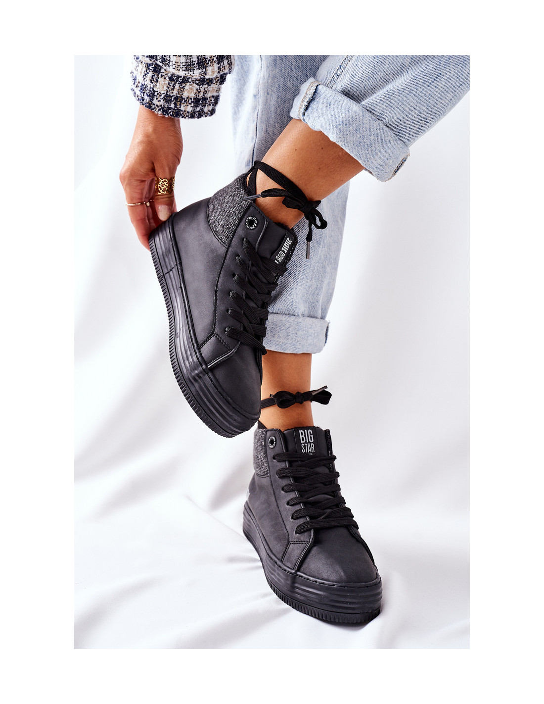 „High BIG STAR“ sportbačiai turi subtilią izoliaciją, kuri yra batų antklodė. Neslystantis, tvirtas padas – saugumo garantija. Batų viršuje yra medžiaginė apdaila. Būtinai peržiūrėkite mūsų BIG STAR kolekciją! Renkantis dydį, naudokite dydžių lentelę.