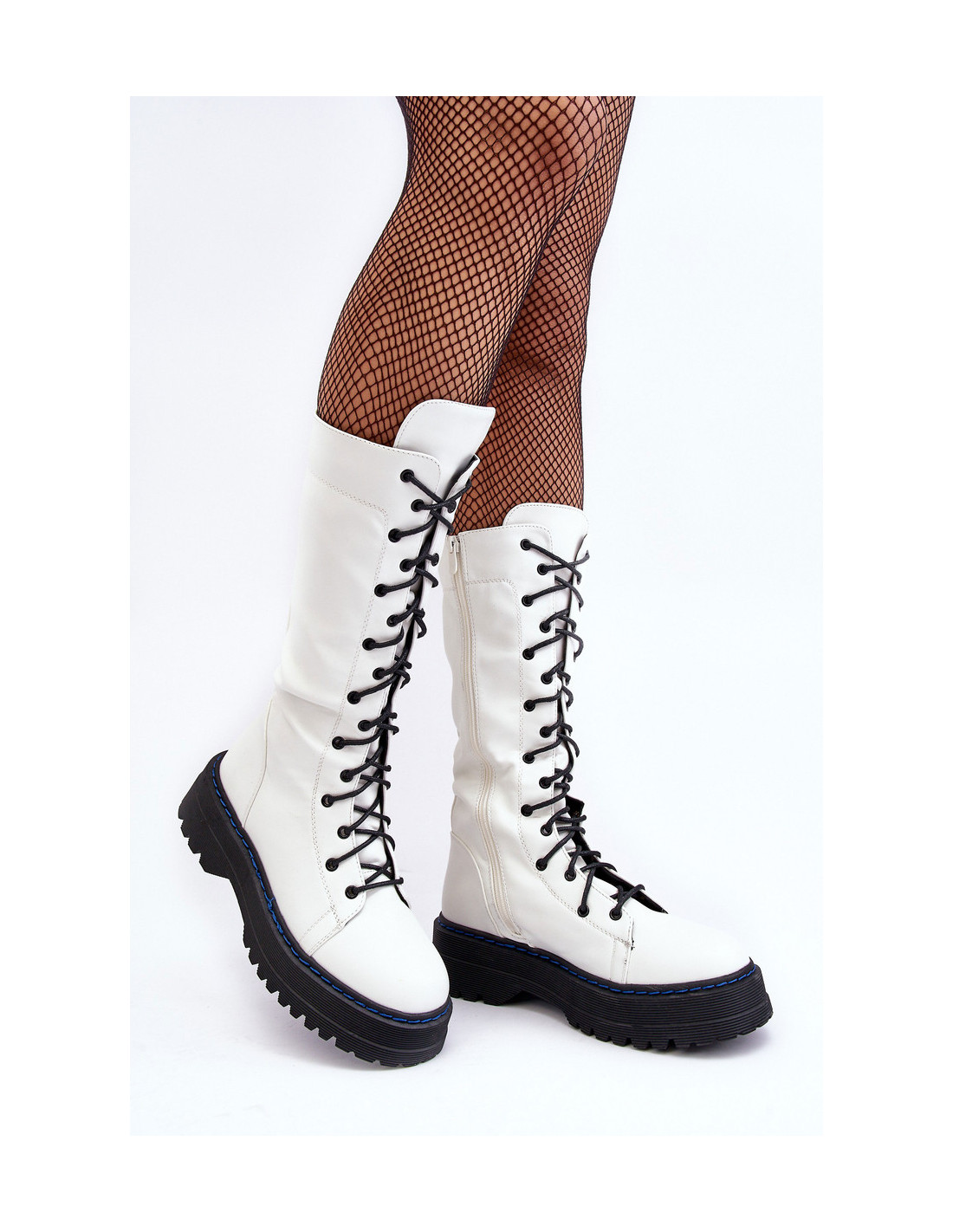 Moteriški batai – kulkšnies batai suvarstomi ir užtrauktuku per visą viršutinę dalį. Pagaminta iš eko odos. Modelis iki blauzdos vidurio. Nustatyta ant masyvios platformos ir plokščio kulno. Kojos pirštas sustingęs. Pirštai suapvalinti. Renkantis dydį, žiūrėkite dydžių lentelę.