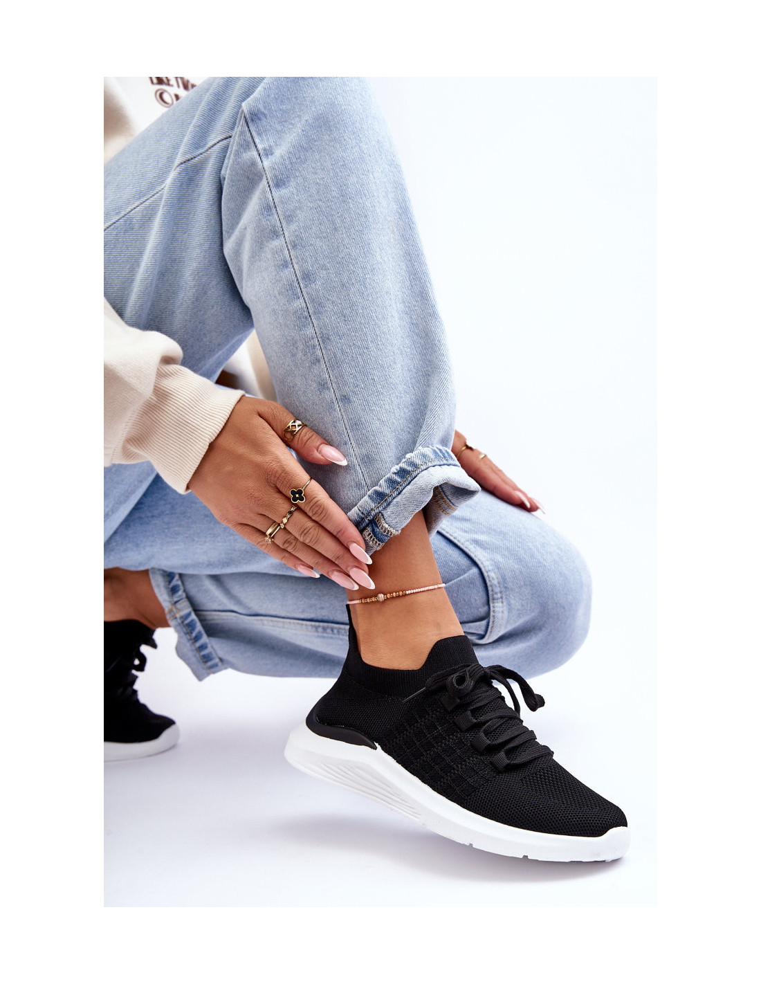 Klasikiniai, kojinių stiliaus moteriški sportiniai batai buvo pagaminti iš kvėpuojančio audinio. Viršutinė dalis iki kulkšnies. Užsegamas, su dekoratyviniu raišteliu viršuje. Batai buvo pastatyti ant guminės medžiagos platformos. Patogus naudoti modelis. Renkantis dydį, vadovaukitės dydžių lentele.