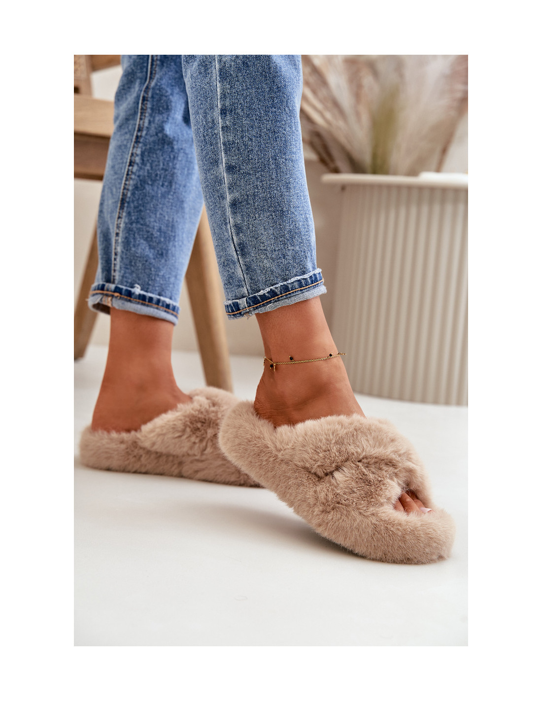 Moteriškos šlepetės storu padu puikiai izoliuoja nuo šaltos žemės. Minkštas kailiukas suteikia pėdoms jaukią. Šios šlepetės ne tik praktiškos, bet ir stilingos, puikiai derančios prie jūsų namų aprangos. Puikiai tinka vakariniam tinginiui ar jaukiam vakarui prie židinio. Renkantis dydį, vadovaukitės dydžių lentele.