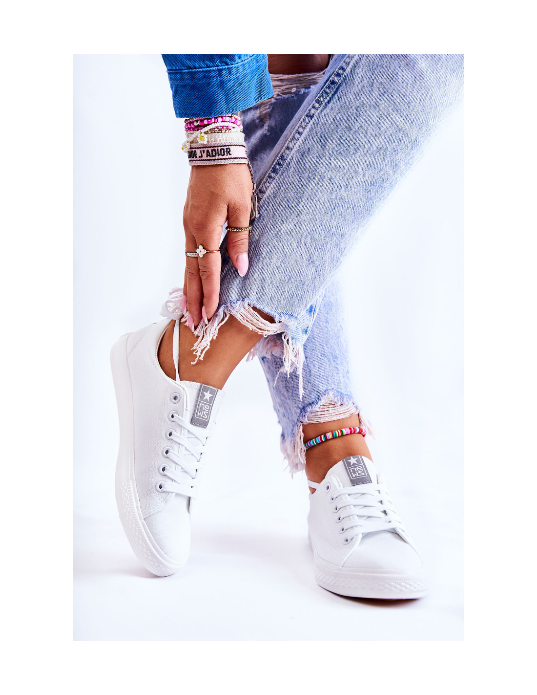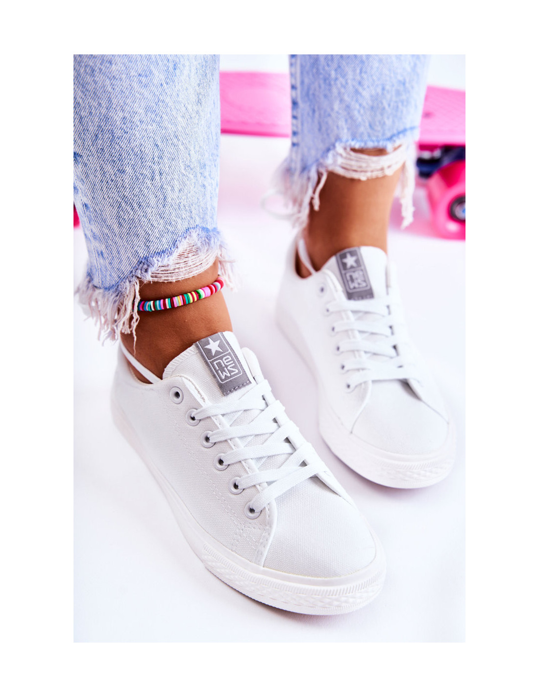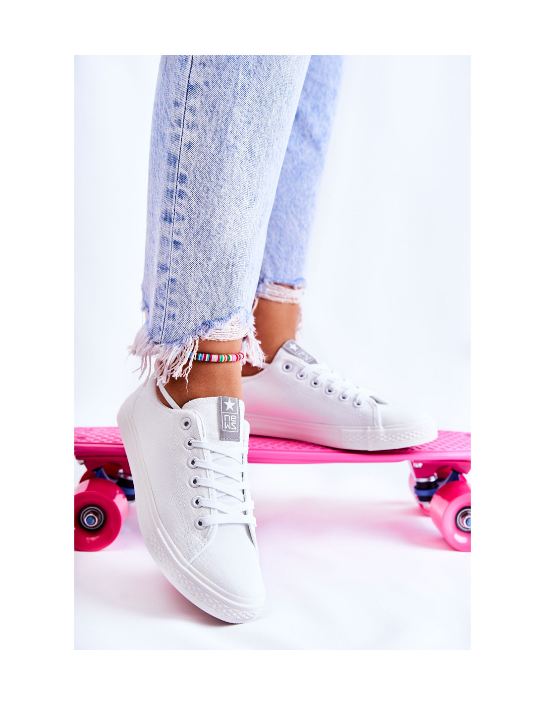 Klasikiniai moteriški sportbačiai iš tekstilinės medžiagos su viršutiniu kulkšnies viršumi. Batai turi guminį padą, kuris papildomai neslysta. Nesenstantis modelis, kurį turėtumėte turėti savo garderobe! Suapvalinta nosis. Patogus, medžiaginis vidpadis užtikrins komfortą naudojimo metu. Modelis klasikiniu būdu surištas plokščiais raišteliais. Renkantis dydį, naudokite dydžių lentelę.